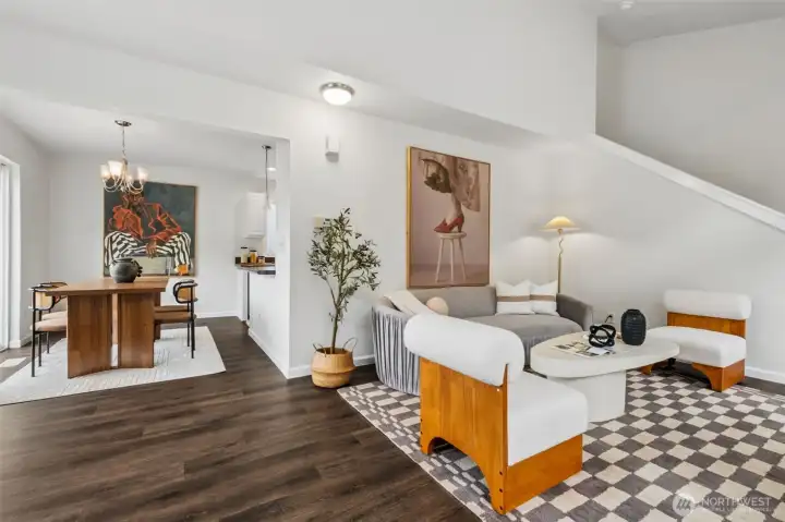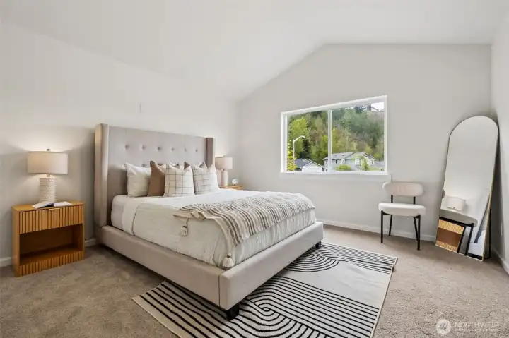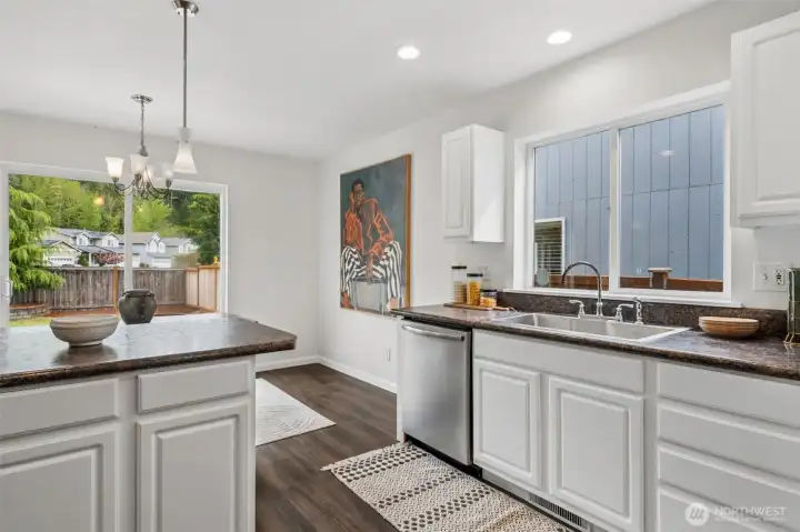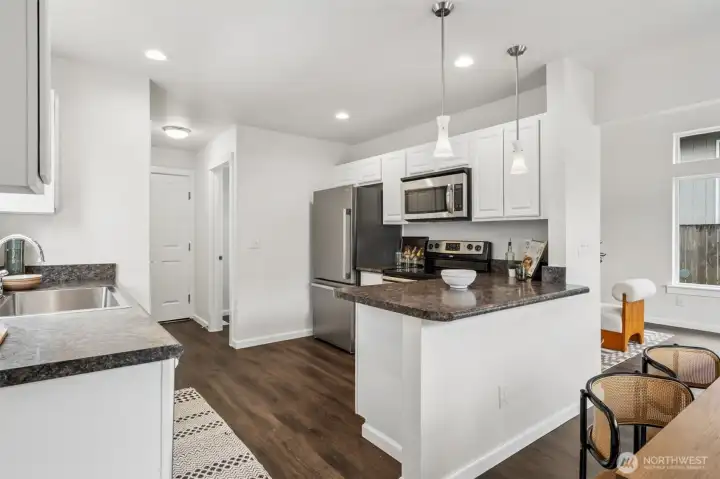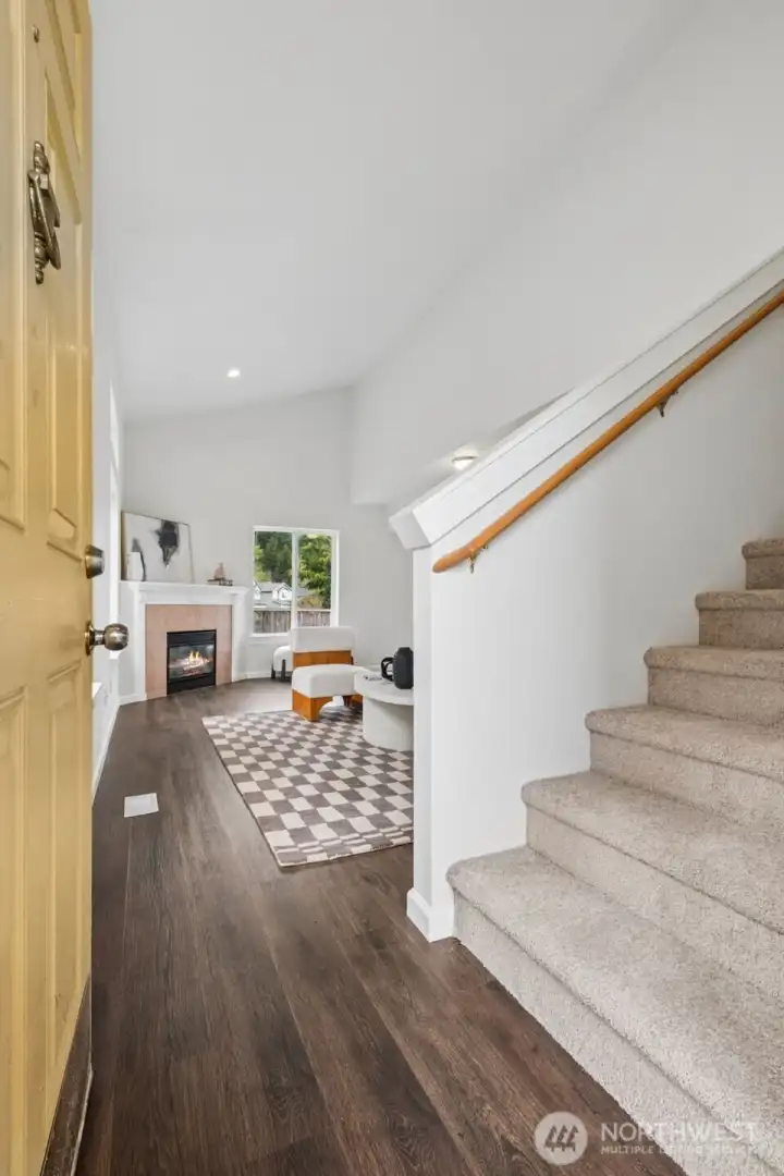 Turn-key perfection in Panorama Heights! This meticulously refreshed 3-bedroom, 2.5-bathroom home lives much larger than its 1,306 sq ft footprint. The interior has been fully transformed with brand new luxury vinyl plank (LVP) flooring throughout the main level and brand new carpet upstairs. Every inch feels fresh with new interior paint extending to all doors and trim.The updated kitchen shines with new stainless steel appliances and modern fixtures. Upstairs, the primary suite offers a spacious retreat with vaulted ceilings, a walk-in closet, and a private attached bath. Additional bedrooms are generously sized and flooded with natural light. Step outside to a huge back deck—recently stained and ready for entertaining—overlooking a fully fenced yard. Complete with an attached garage and a location that is a dream for commuters, this Bonney Lake gem is move-in ready.