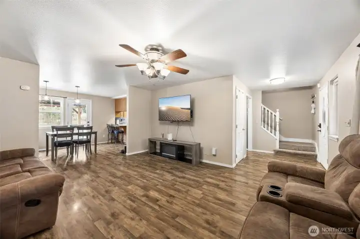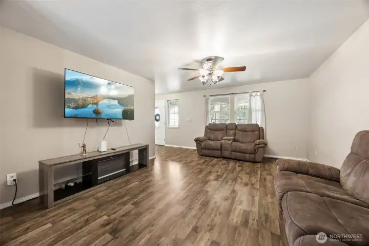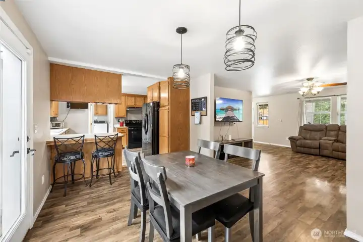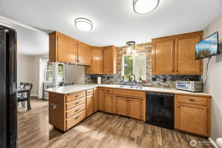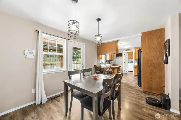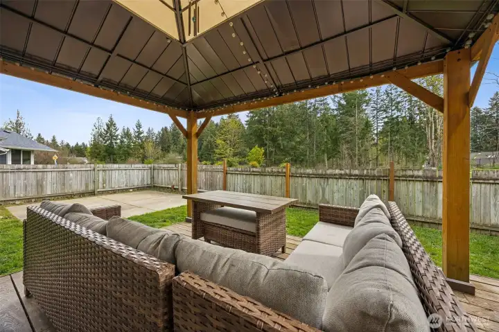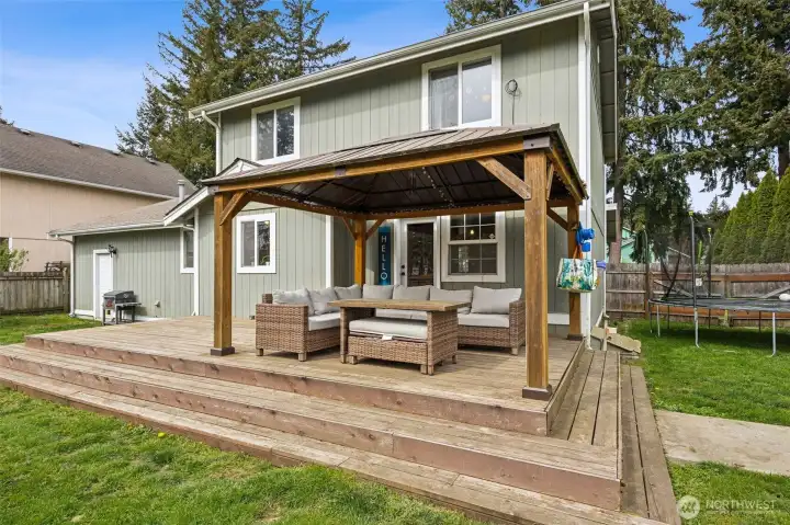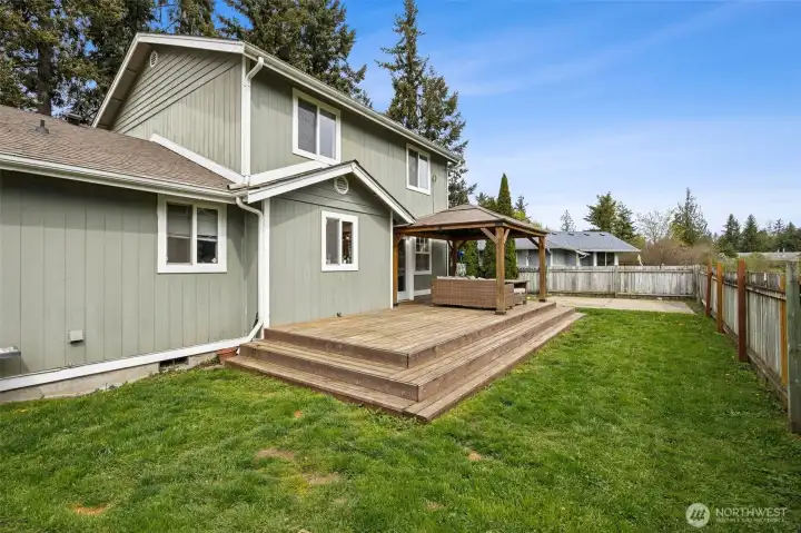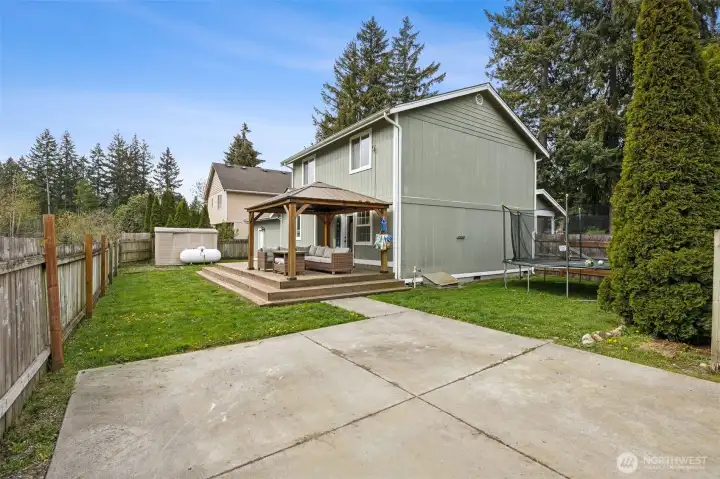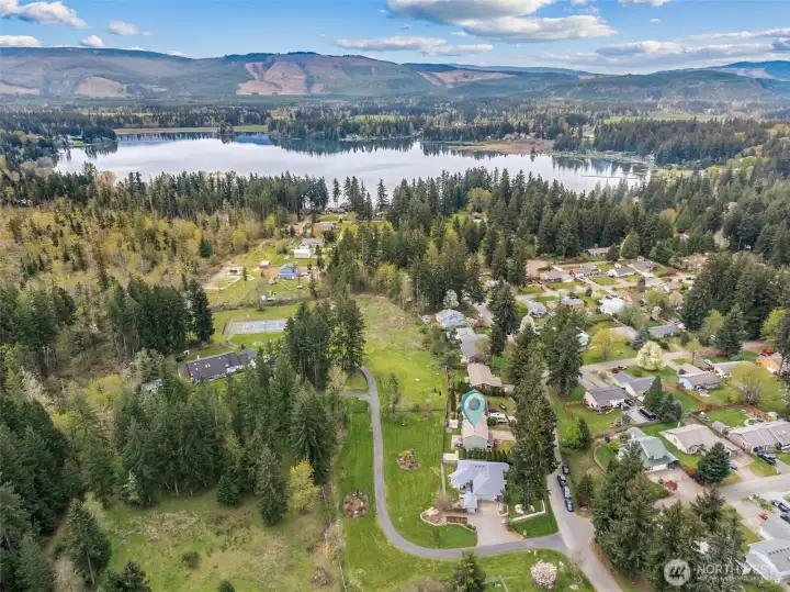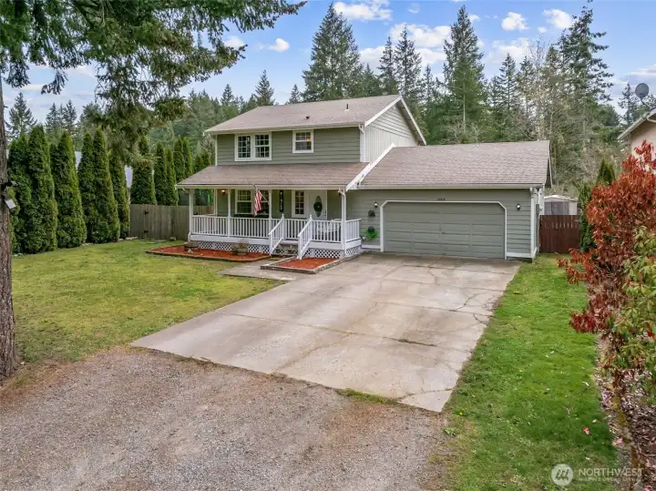 Tucked inside the Scenic Shores community, this property offers the kind of lifestyle people move to the Pacific Northwest for. Enjoy private access to Lake Lawrence where boating, kayaking, fishing and waterfront sunsets can become part of your everyday routine. Set on a generous private lot, the home welcomes you with a classic covered front porch that feels made for slow mornings and evening conversations. Inside, the layout is comfortable and inviting, with spacious living areas, natural light and a kitchen that truly functions as the heart of the home - complete with bar seating, extensive counter space, plentiful cabinetry and views out to the backyard. The oversized garage provides room for vehicles, storage, hobbies, or gear, while the mudroom adds everyday practicality after time spent outside. There is no shortage of parking here, with a large driveway offering plenty of space for guests, trailers, or toys, plus secured RV parking privately tucked behind the fence. Out back, the setting is designed to be enjoyed with a large deck, gazebo and paved patio that create the perfect backdrop for gatherings, summer dinners, or peaceful nights under the stars. Located just minutes to town conveniences, local dining, and outdoor destinations, with a convenient commute toward Joint Base Lewis-McChord, this is where comfort, space and Northwest living come together.