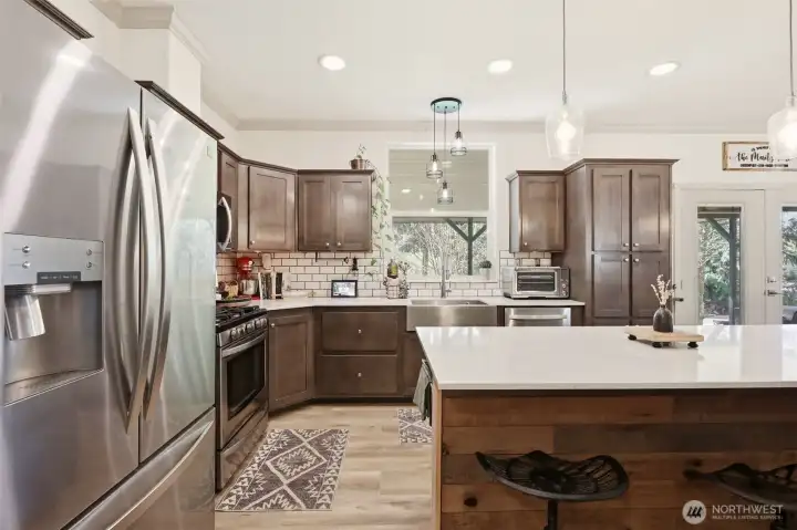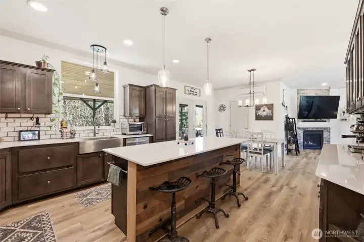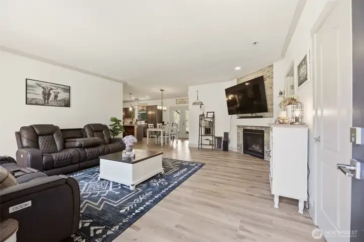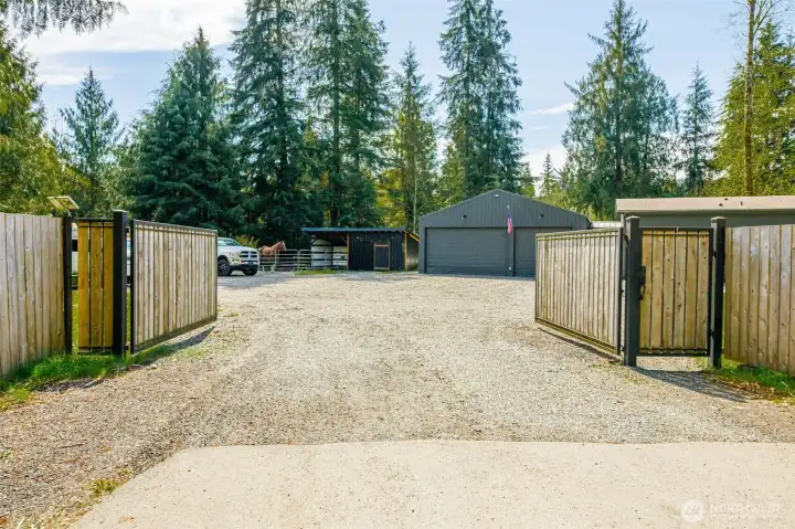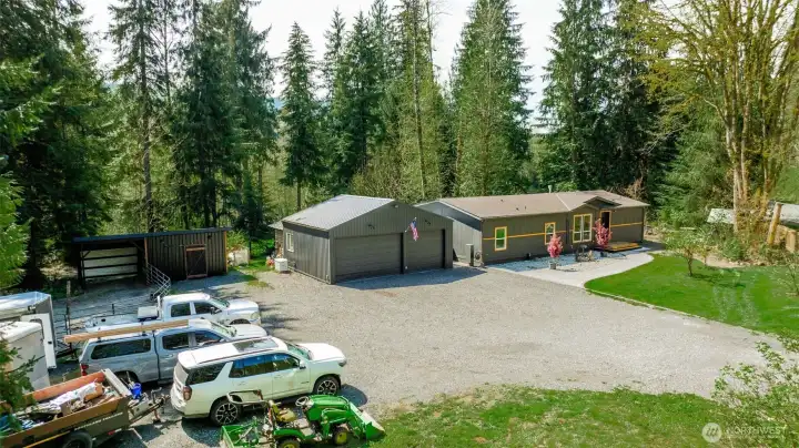 4.48 Gated Acres · Private Creek · DNR Access · Mountain Views · Imagine this: Set behind a private gate and tall privacy fence, this property offers a quiet kind of homestead-style living, with space to breathe and room to roam. A creek winds through the property, mountain views stretch into the distance, and DNR land sits just next door. The sense of privacy here is real. Inside, the home has been thoughtfully cared for and updated: new luxury flooring, interior paint, quartz counters, custom tile in the bathroom, and a propane fireplace bring comfort, while the primary suite is set apart from the secondary bedrooms, creating a layout that you will love. The open-concept floor plan connects the kitchen, dining, and living areas, creating an easy, functional flow. This 3-bedroom, 2-bath home features a spacious kitchen with a large island, pantry and a dedicated laundry/mud room with a utility sink. The backyard lives like an extension of the home, with a covered tongue-and-groove outdoor living space that invites gathering, unwinding, and taking in views of the pasture and creek. The heated three-car garage shop and detached heated office add flexible & functional spaces. Designed with a practical connection to the land, the property is fully equipped for equestrian use, with a horse stall, barn with hay and tack storage, and a dedicated turnout area. Riding, ATV trails, and year-round outdoor recreation all yours! Pre-inspected and appraisal on hand