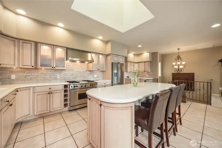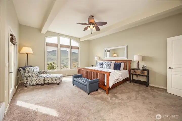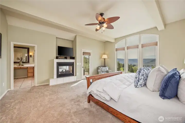 Stunning wall of windows, Vaulted ceilings and gas fireplace.