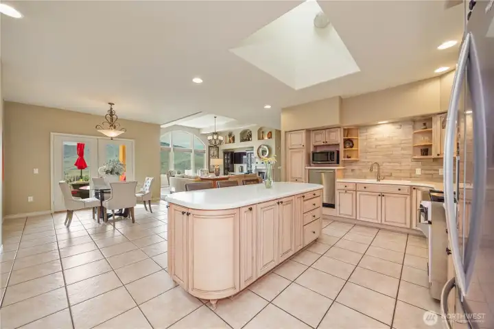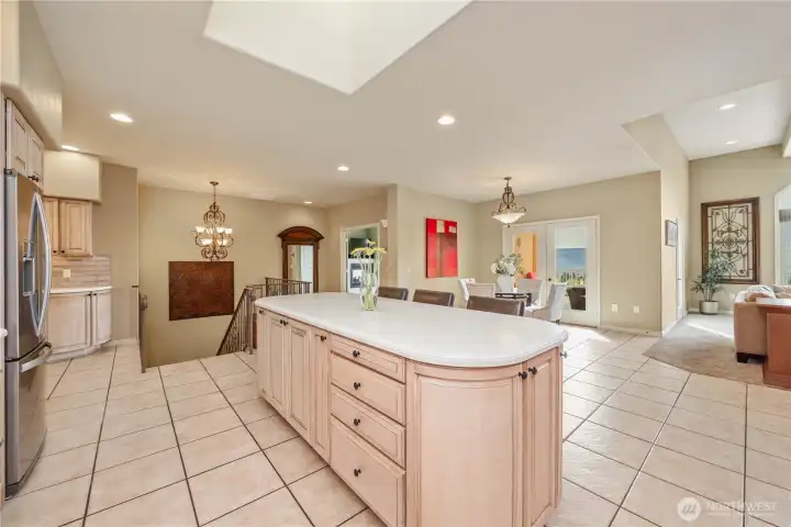 Great room features ample space for all to enjoy overlooking the golf course, lake and the butte.