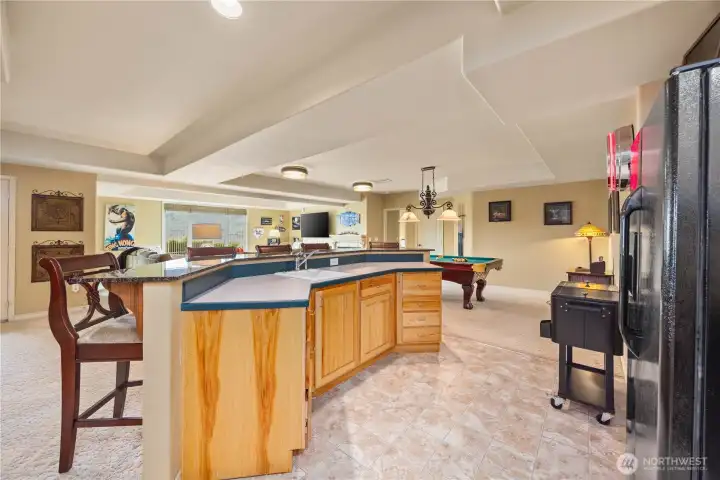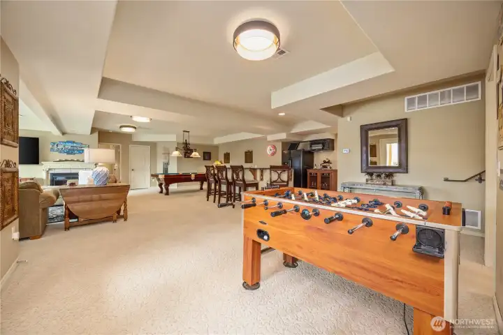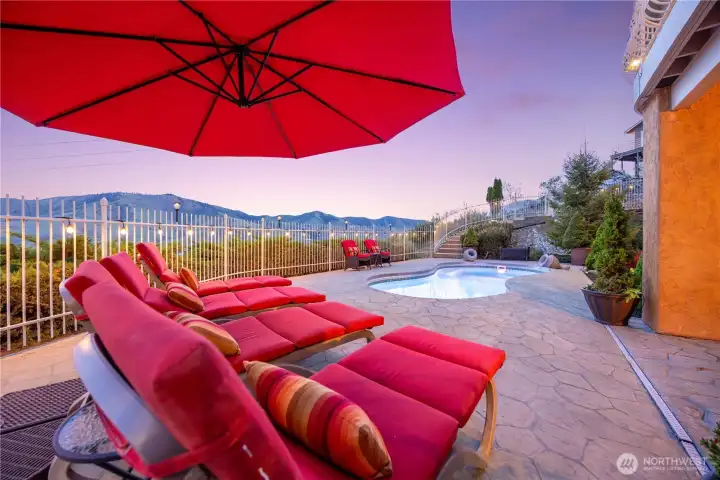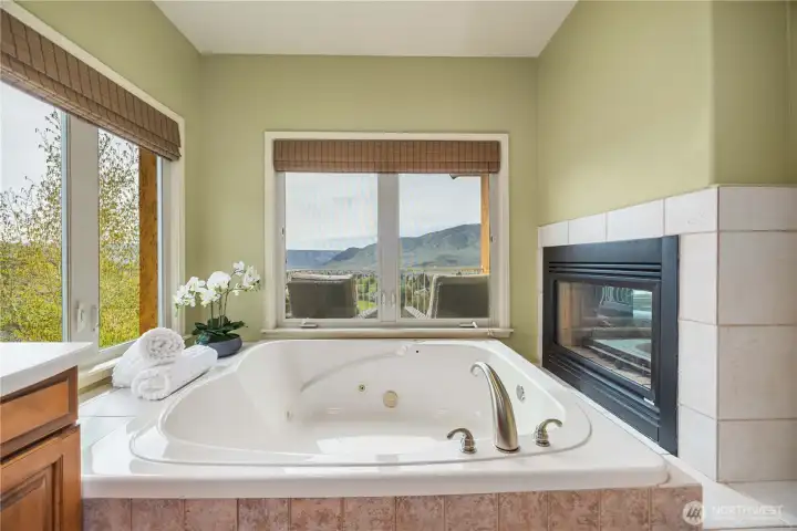 Lower living with propane fireplace overlooking the pool and stunning view of Chelan Butte
