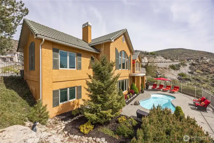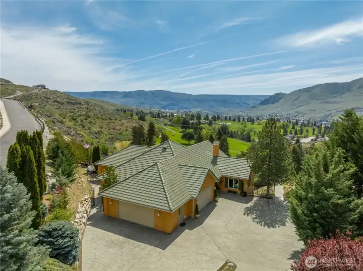 Perched above the fairways with sweeping views of the lake, this extraordinary Chateau estate captures the essence of luxury living in Lake Chelan. A sparkling in-ground pool anchors the outdoor experience, perfectly positioned to take in the breathtaking scenery. Spanning over 4,800 square feet, the residence showcases a thoughtfully designed and highly functional layout. The grand main level features an open-concept living, dining, and chef’s kitchen, seamlessly blending elegance and comfort. Just off the entry, a private office offers the ideal vantage point to watch golfers or simply enjoy the serene surroundings. The main-level primary suite is a true retreat, complete with a spa-inspired ensuite featuring a jetted Jacuzzi tub, oversized steam shower with sauna, and an expansive walk-in closet. The lower level is designed for both relaxation and entertaining, offering two junior suites, an additional guest bedroom, versatile flex space, wet bar, and an expansive game and family room. Floor-to-ceiling views continue throughout, with direct walk-out access to the pool creating a true resort-style experience. Car enthusiasts and hobbyists will appreciate the impressive 1,254-square-foot attached garage with ample room for storage, workshop space, and more. A separate dedicated golf cart garage provides direct access to the Lake Chelan Municipal Golf Course, enhancing the lifestyle this home so effortlessly delivers. A rare one-of-a-kind offering.