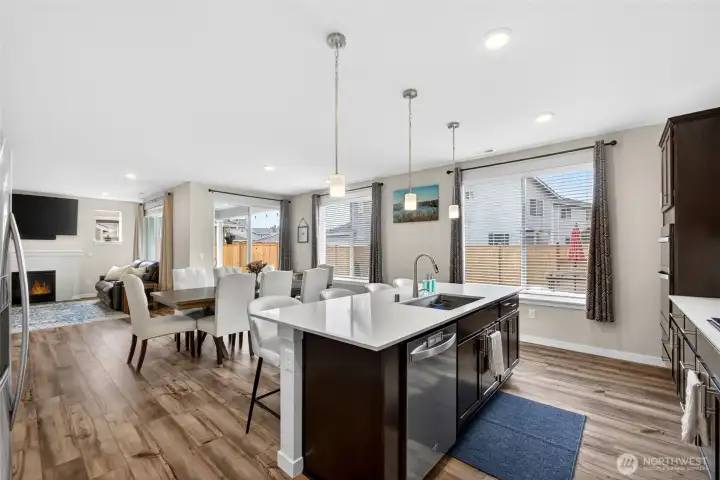 Open concept layout seamlessly connects the entry, great room, kitchen and dining area