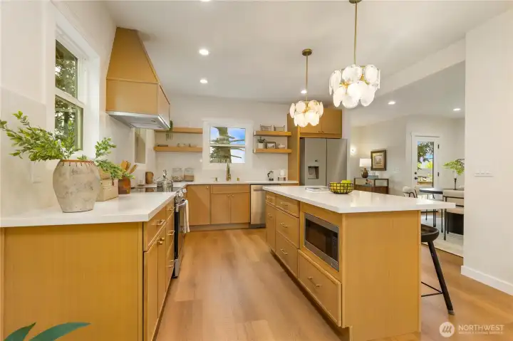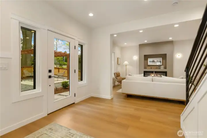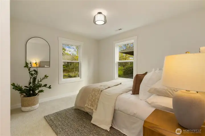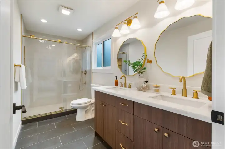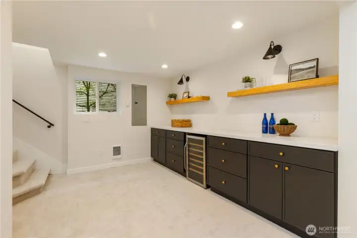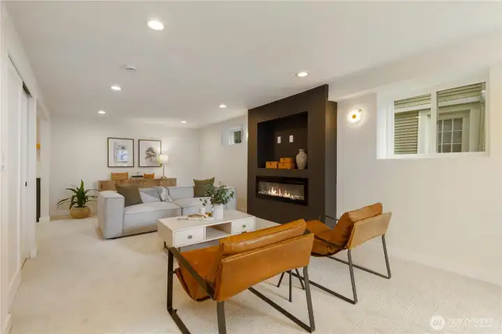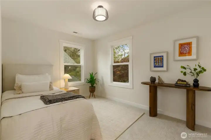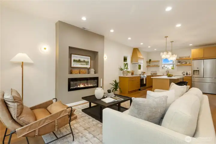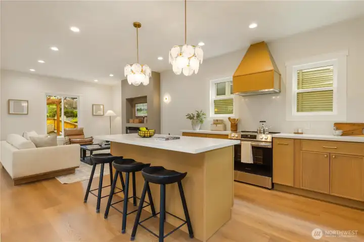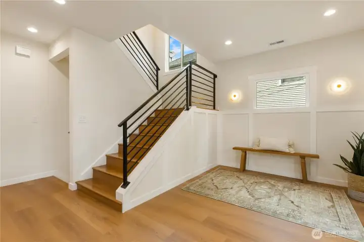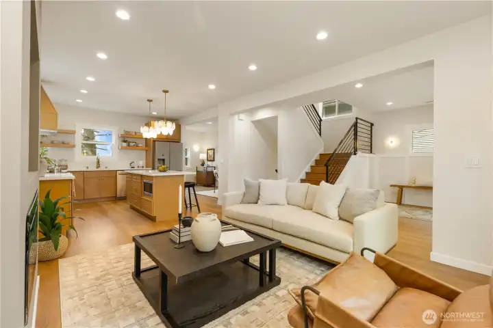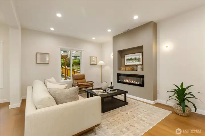 Beautifully remodeled Queen Anne home with permits, featuring tall ceilings throughout and abundant natural light. This 2-story home with basement offers a main level with living room, kitchen, dining area, and powder room, plus access to stairs leading to the backyard. Upstairs, the oversized primary suite captures views and includes a walk-in closet and private bath with double vanity. Two additional bedrooms and a full bath complete the upper level. The lower level features a spacious family room with electric fireplace, bar with beverage cooler, 4th bedroom, full bath, and laundry room. Enjoy outdoor living with a welcoming front yard pergola and a private, landscaped backyard. Mini-split heating and cooling system. Designated parking.