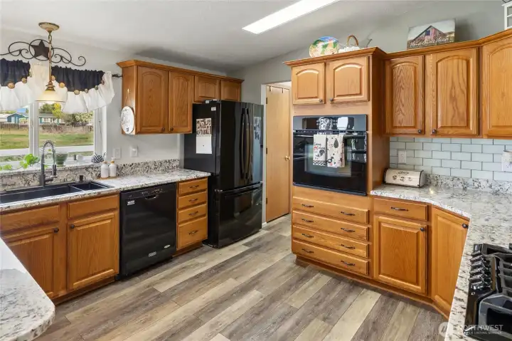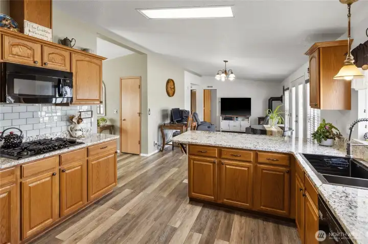 Fantastic kitchen with new beautiful granite counters, new flooring, tons of cabinet and counter space and a GAS cook top - every chefs' favorite!