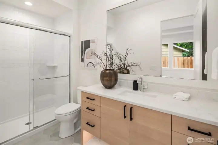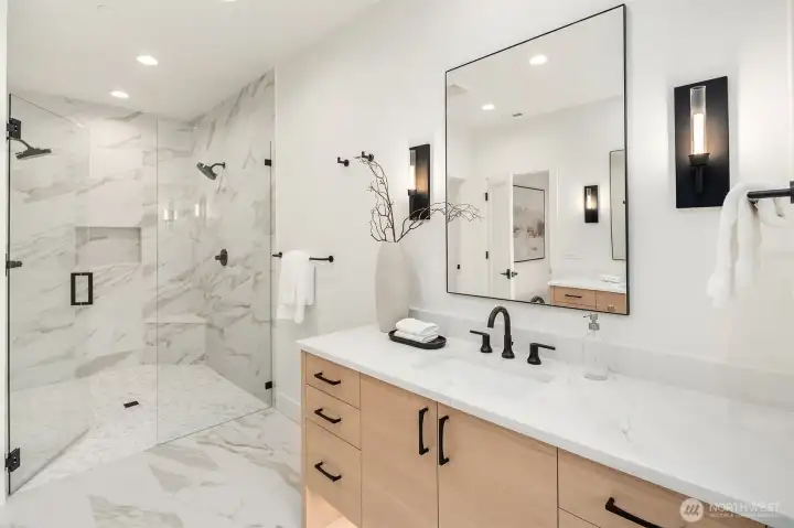 MN Custom Homes presents a transitional design in the heart of Education Hill ideally located on a cul-de-sac. Entertainment spaces include 2 story great room, chef’s kitchen, outdoor covered living space, and upper floor bonus room. Primary suite retreat with 5-piece bath & heated floors. Main floor guest en-suite. Designated home office and dining room. Spacious, private backyard. East facing front door. 3 car wide garage. Smart & green home features throughout, including solar panels. Convenient access to shopping, schools, DT Redmond, and all Tech Campuses.