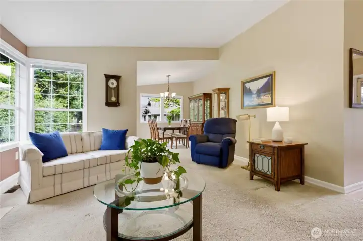The home welcomes you into a bright living room, with the kitchen conveniently located to the right. Enjoy easy, single-level living—no stairs, no worries.
