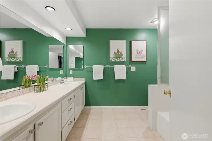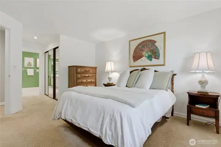 The primary suite offers a walk-in closet and an exceptionally large ensuite bathroom, creating a comfortable and private retreat.