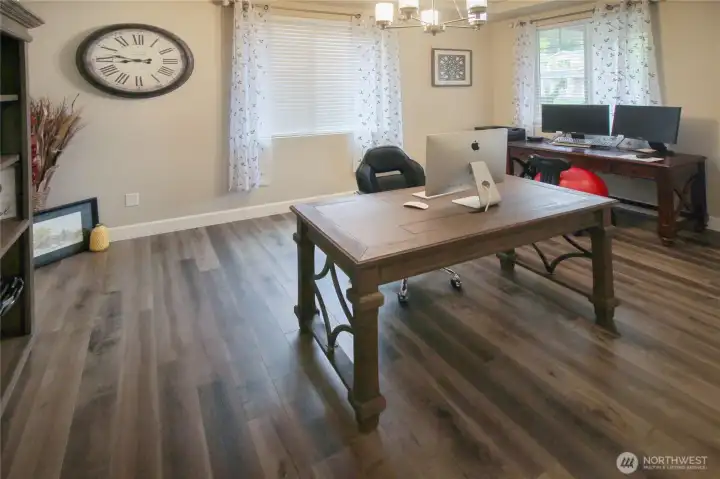 The spacious entry with office space on your right, main floor bedroom to your left, and the open concept living straight ahead!