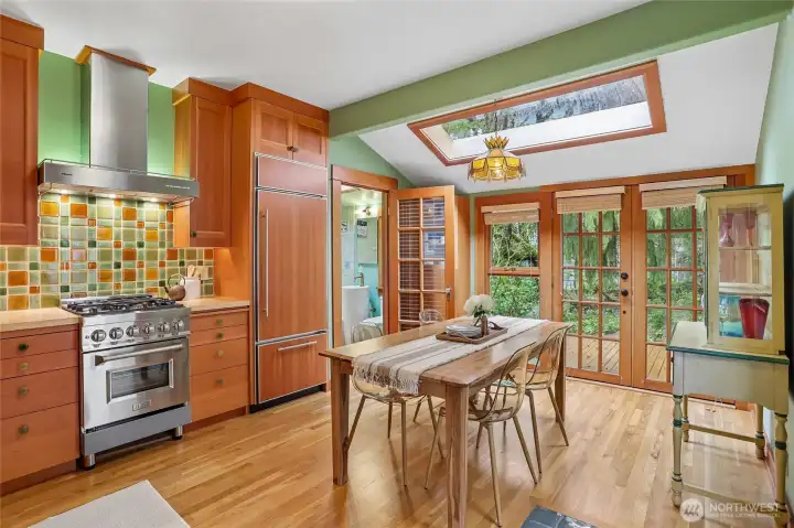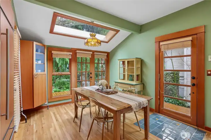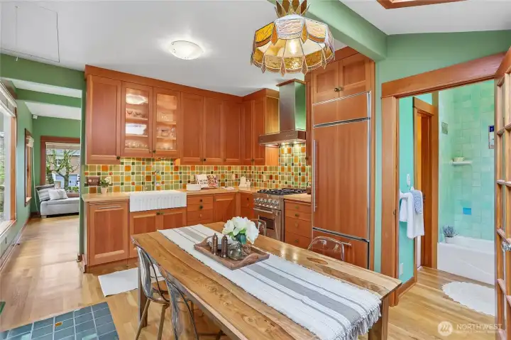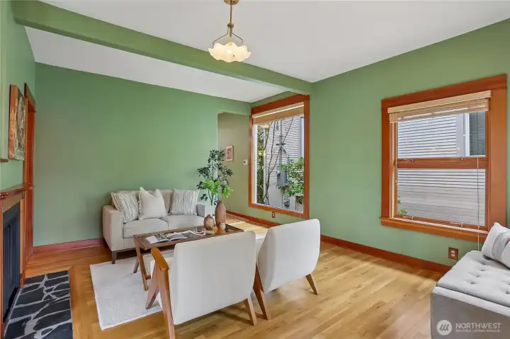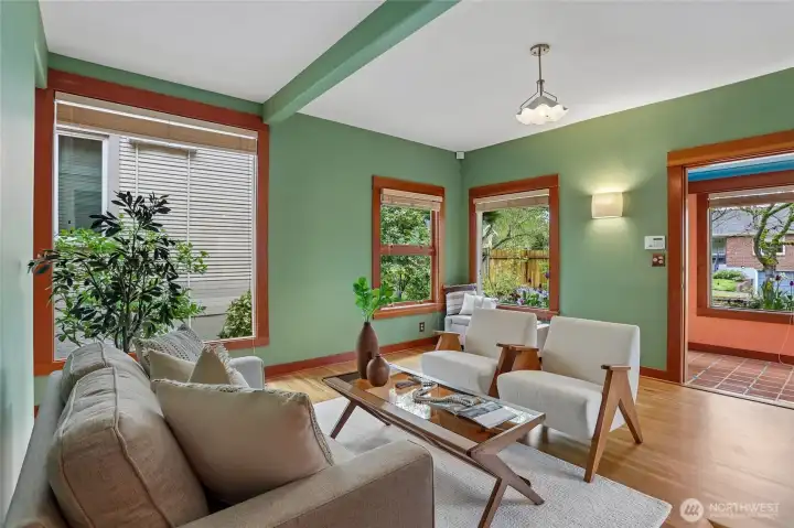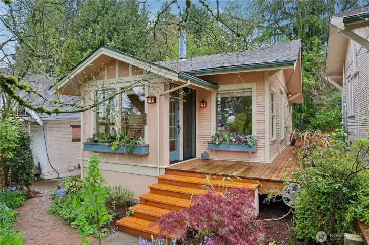 Rare Ravenna offering blending timeless character with artisan craftsmanship and health-conscious design. Originally built in 1910 & extensively reinvented, this 2-bedroom, 2-bath home lives larger than its ~1,600 sq ft. Lifted in 1991, a fully rebarred, earthquake-engineered foundation was newly built—not a retrofit—adding a second level. Updated electrical, copper plumbing, & new sewer line provide long-term confidence. Inside, a European boatwright’s hand is unmistakable: vertical-grain fir, custom millwork, museum-quality finishes. The chef’s kitchen pairs Sub-Zero & Miele appliances with handcrafted cabinetry, European & recycled-glass tile. Sound-insulated floors & walls ensure quiet privacy for work & guests; non-toxic materials & allergen-conscious choices prioritize wellness throughout. Offered for the first time in 38 years, every decision was made for longevity & daily beauty—neither a flip nor a stepping stone. Recent upgrades: new roof and skylights (2022), heating (2023), exterior paint (2024), fence (2025), with curated improvements into 2026. A clear cedar deck & established gardens offer a serene, low-maintenance retreat. Seattle’s bicycle greenway runs right in front, linking to Green Lake, Magnuson, the Burke-Gilman Trail, & beyond. Two blocks to light rail, with UW, markets, parks, & downtown all within effortless reach. A rare fusion of enduring quality, architectural character, & elevated livability in one of Seattle’s most sought-after enclaves.