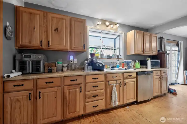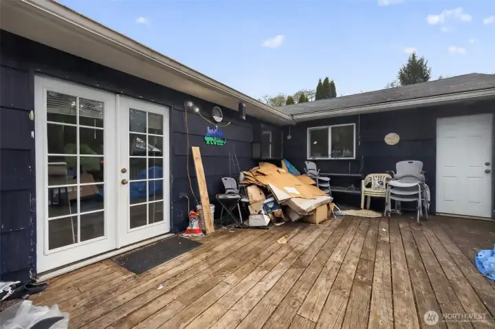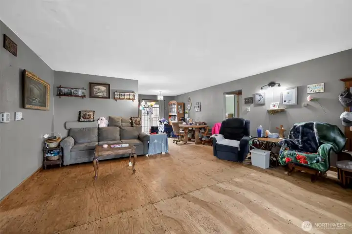 One Level, 3 Bed 1.5 Bath Home on an Oversized .39 Acre Lot with a 3 Car Garage and ADA Compliant Ramp for Easy Move-In! Inside, the home features an easy-living single-level layout with flooring redone in November 2025, with kitchen featuring stainless steel appliances, ample oak cabinetry that flows into a large dining area with French doors leading to the back elevated deck overlooking the property. Bedrooms are positioned off the main living area with convenient access to the updated bath, which features a recently installed walk-in tub. Exterior features include both front and back decking, RV parking with hook up, a fire pit, a fully enclosed chicken coop, and a greenhouse. The attached garage has 2 separate entrances and plenty of workspace.