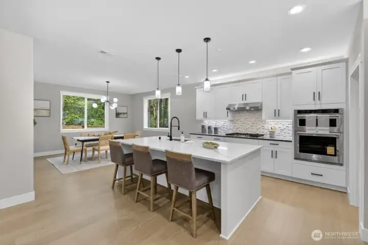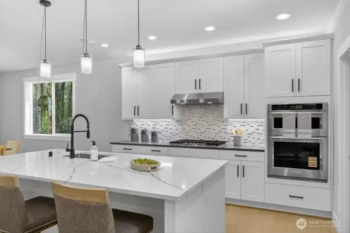 Tucked in the Kenmore this 5-bed new construction home by Arcadia Homes features soaring 9-foot ceilings and dramatic floor-to-ceiling windows that flood the home with natural light & enhance the expansive open-concept layout and wide-plank hardwood flooring. The entertainer’s kitchen is appointed with chef-grade stainless steel appliances, wine cooler, oversized island with seating, and spacious walk-in pantry. Custom built-ins throughout. 1-bed on main & 4-up, including a generous primary suite complete with a spa-inspired 5-piece bath and custom walk-in closet. Designed for seamless indoor-outdoor living, the covered outdoor space is ideal for year-round entertaining, featuring an outdoor gas fireplace and built-in gas BBQ. Oversized 2-car garage. Located within the coveted Northshore School District. Enjoy a quiet, tucked-away setting with close proximity to Saint Edwards State Park, transit, and major commuter routes.