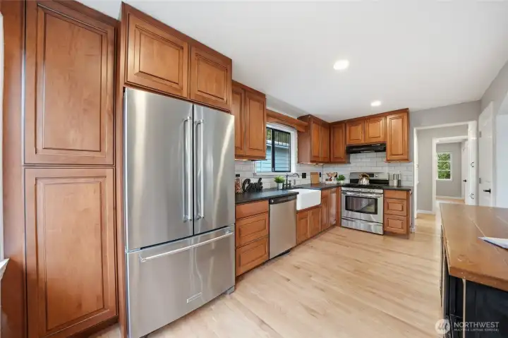 Stunning Updated Home in Prime Sand Point with Lake Washington Views & Modern Living. Welcome to this beautifully updated residence in Seattle’s desirable Sand Point neighborhood, just steps from Magnuson Park, Lake Washington waterfront trails, and all the amenities of one of Seattle’s most sought-after communities. Curb appeal shines with the home’s fresh exterior, manicured landscaping, and welcoming entry. Inside, the open-concept layout features abundant natural light, high-quality finishes, and thoughtful updates throughout. The gourmet kitchen boasts rich wood cabinetry, stainless steel appliances, a large island, and generous counter space—perfect for everyday meals or entertaining. Adjacent living and dining areas flow seamlessly, creating an ideal space for relaxation and gatherings. Multiple living spaces and flexible rooms provide room to grow, work from home, or host guests. Enjoy breathtaking views of Lake Washington and the evergreen landscape truly bringing the outdoors in. The home has been tastefully updated with modern touches while preserving its welcoming character. This turnkey home is move-in ready and perfectly positioned for those seeking a blend of urban convenience and natural beauty in Seattle. Don’t miss this opportunity!