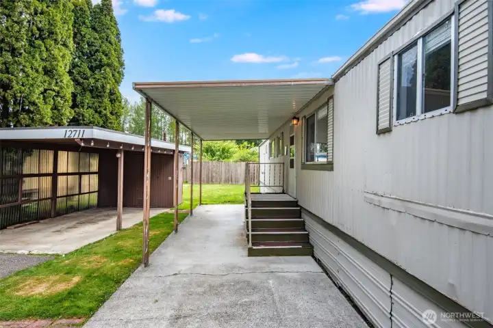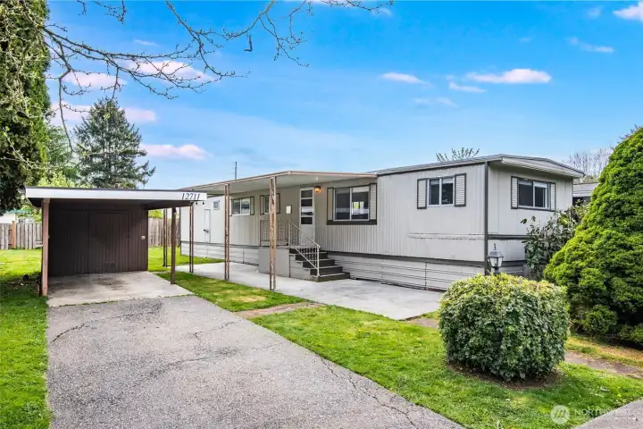 Welcome to McMillan Meadows 55+ community in Puyallup. This home features 3 bedrooms with 1.5 baths. One bedroom on the opposite side with 1/5 bath for privacy and 2 beds and 1 full bath in the rear of home. Home has new interior paint, butcher block kitchen counters, roof, carpet and much more. Carport for parking and additional storage outside. Call today!