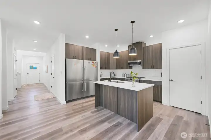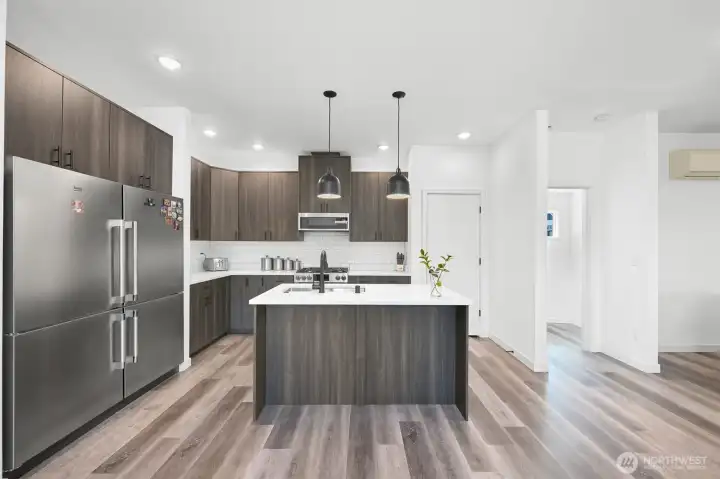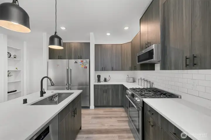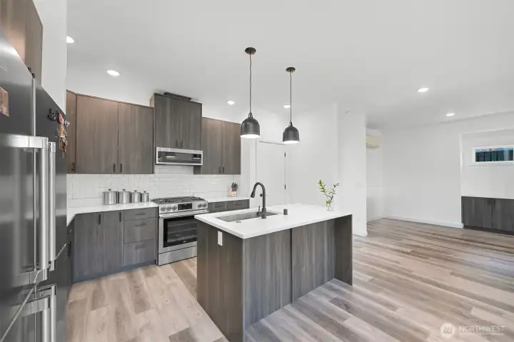 Main-floor primary suite takes center stage in one of the most desirable floor plans available today. This like-new 4-bedroom home offers 2,398 sq ft of beautifully designed living space that perfectly balances comfort, style, and functionality.The open-concept main level showcases a welcoming great room with a statement fireplace, flowing seamlessly into a modern kitchen featuring quartz countertops, designer tile backsplash, and abundant cabinetry. The main-level primary suite provides a private retreat with a ¾ bath, walk-in closet, and additional laundry hookup for added convenience.Upstairs, you’ll find three generously sized bedrooms, a full bath, and a versatile loft—ideal for a home office, media room, or play space. A covered patio extends your living outdoors year-round, while the oversized 3-car garage offers exceptional room for storage, hobbies, or projects. Thoughtfully designed for today’s lifestyle—this home truly stands out. Don’t miss it!