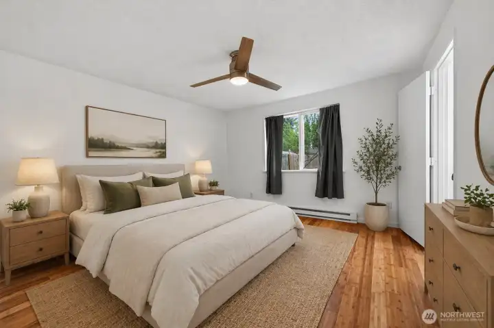 Beautifully updated 3-bedroom, 1.5-bath home on a spacious .23-acre lot in Puyallup. This well-maintained property features fresh interior paint, newer ¾" bamboo flooring, and a reinforced subfloor for added quality and durability. Stay comfortable year-round with a wood-burning fireplace, pellet stove insert, and new baseboard heaters.The kitchen has been refreshed with paint, a new microwave, and a newer refrigerator, plus a new double oven with warranty. Bathrooms include updated vanities, and the home offers flexible living with dual washer/dryer hookup locations.Major updates include a 3-year-old roof and gutters, newer driveway, and a recently pumped and certified septic system. Enjoy outdoor living with a covered back porch, two storage sheds on concrete pads, and a built-in dog door.A standout feature is the incredible garden and orchard, complete with a variety of fruit trees, berries, grapes, and rich organic soil, truly a gardener’s dream. Relax and unwind in your private 4-person cedar sauna.This property offers a rare combination of comfort, updates, and lifestyle, all in a desirable Puyallup location.