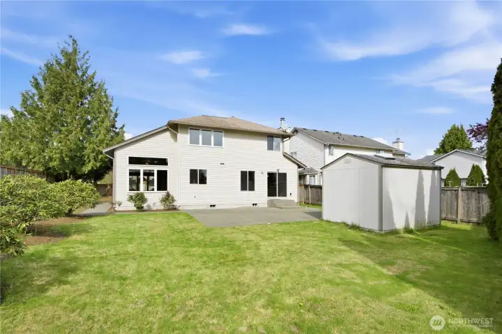 Welcome to this 3-bedroom, 2.5-bath home with a dedicated office in the convenient Juanita neighborhood of Kirkland. On the main level, you’re greeted by a bright living room and formal dining area featuring soaring vaulted ceilings and abundant natural light. The kitchen opens to the cozy family room, complete with a wood-burning fireplace, creating a perfect space for everyday living and entertaining. Step outside to a fully fenced, spacious backyard with a large concrete patio and grassy area, ideal for outdoor gatherings, play, or relaxation. An oversized shed provides ample storage for tools, equipment, and outdoor gear. Don’t miss the home office conveniently located next to the garage. The main floor also includes a powder bath and laundry room. Upstairs, you’ll find three generously sized bedrooms, including the primary suite with a 5-piece ensuite bath and walk-in closet. Enjoy the prime location within walking distance to QFC, local shops, restaurants, and easy freeway access. Seller procured pre-inspection report is available.