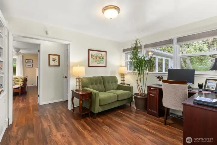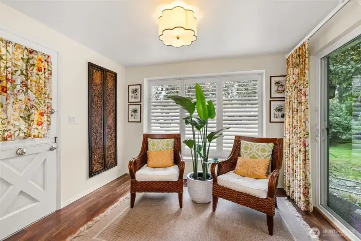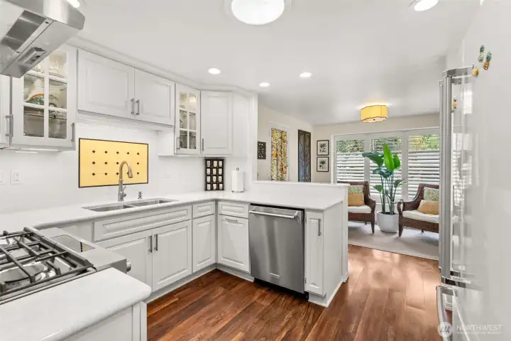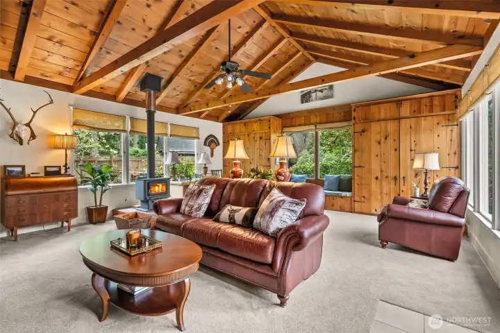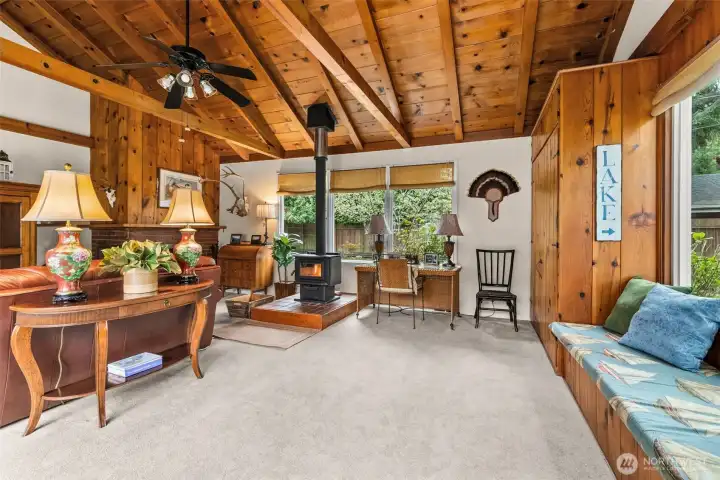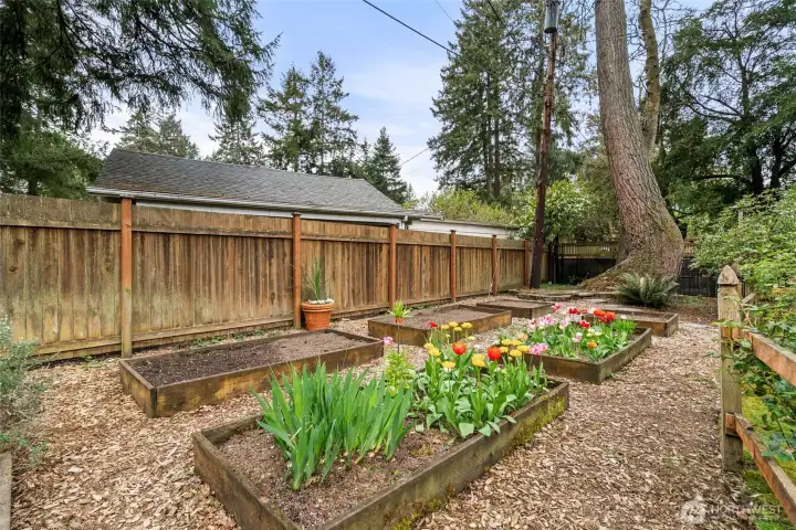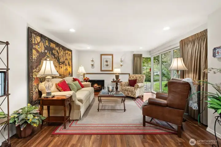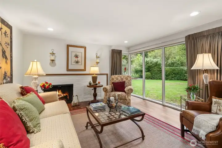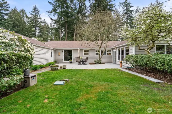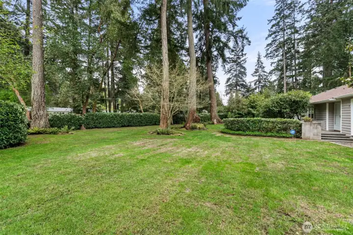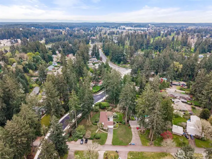 SINGLE level home providing the backdrop for an incredible life in the heart of Lakewood. Rambler floor plan provides all living areas in a well thought out design nestled on an ample sized corner lot over half acre w/ mature landscaping; a true gardeners dream. Living room w/ walls of glass; dining room flows to outdoor patio; NEW KITCHEN w/ stainless steel appliances and quaint sitting area w/ shutters. PRIMARY BEDROOM w/ charming brick fireplace; ensuite bath and oversized window to take in views of the mini orchard. FAMILY ROOM with massive, vaulted wood clad ceiling and access to the rear patio. Added perks include new ROOF IN 2026, EXTRA Parking, GARDEN BEDS, Extensive MATURE PLANTINGS. The outdoor spaces are as well cared for as the interior; from fruit trees, bulbs, hedges and flowering shrubs you are sure to enjoy the outdoor spaces as much as inside. The neighborhood has undergone a new sidewalk around Gravelley Lake-3 Miles long! All this is located close to the TACOMA COUNTRY CLUB, area Lakes, services and freeway access. Located where charm, care and convenience come together.