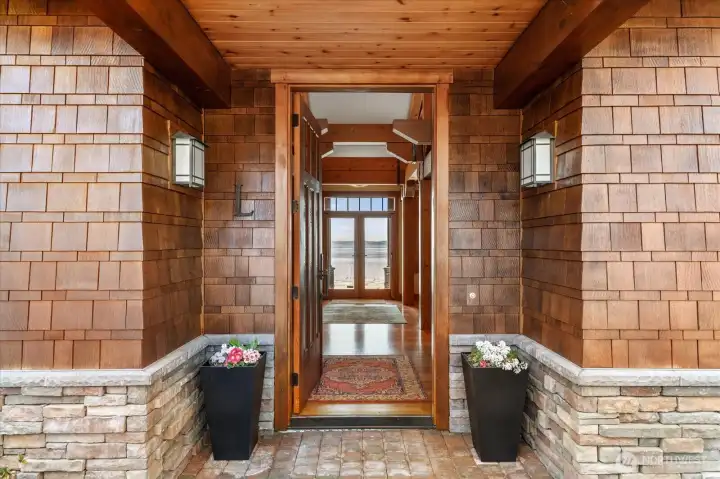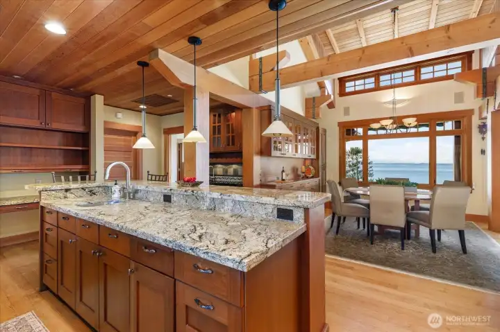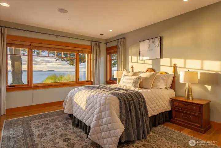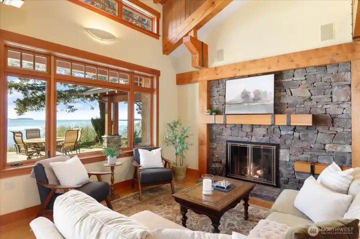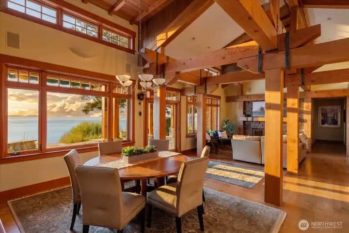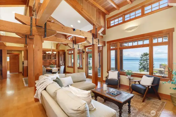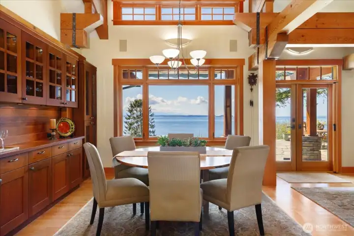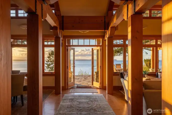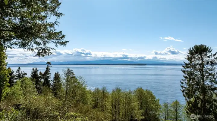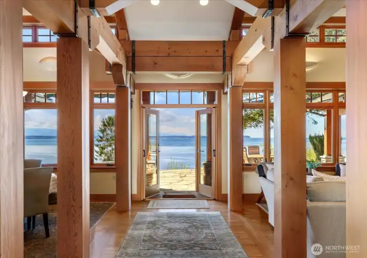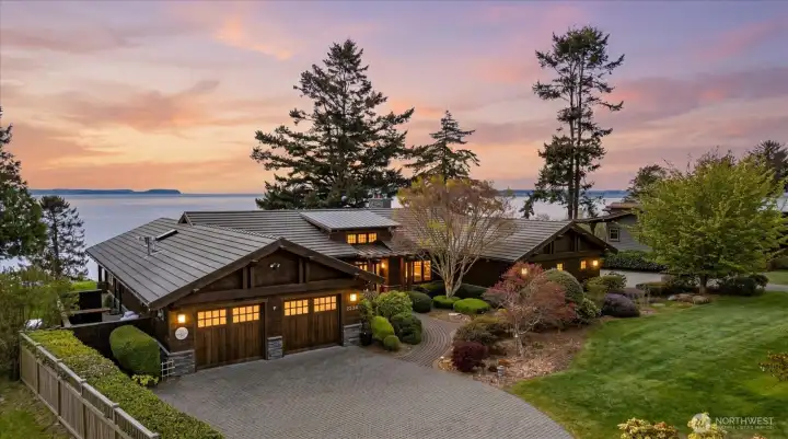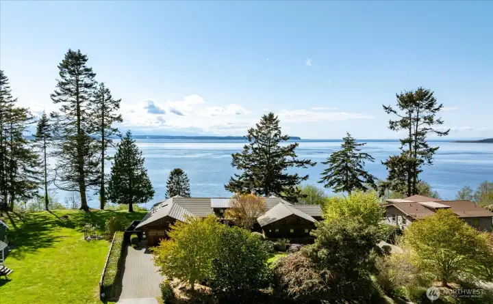 Custom Northwest Contemporary designed by notable local architect, Todd Soli. The home captures panoramic westerly views across Admiralty Inlet to the Olympic Mountains and beyond. Solid hardwood floors flow throughout the light filled spaces. Beautiful douglas fir millwork is complemented by the old growth fir column & beam interior structure. The expansive windows throughout the living area offer views from every room. The refined one level floor plan offers ease of living and privacy for owner & guests. A large flagstone patio is the perfect spot for watching the shipping lanes and wildlife pass by. Two impressive bedrooms face the ever present view with direct access to the patio from each, perfect for morning coffee or taking in the sunset with a cool beverage. A short stroll down the community owned drive brings you to miles of beach walking or a place to launch your kayak. The chef's kitchen is elegantly designed for function and entertaining in mind. Granite counters, custom fir cabinets, SubZero refrigerator and double ovens create a welcoming space for meal prep or gathering. Two separate double car garages provide extra space for a collectable car or shop area. Built in 2004 by the current owner, the single level home has been meticulously cared for and enjoyed with family and friends for many years. This home blends elegance, comfort and the very best of Northwest living and design. Come enjoy the good life on Whidbey Island!