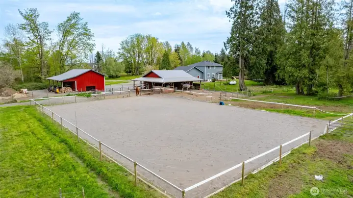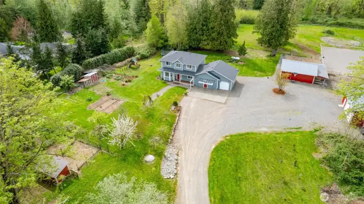This exceptional property has so much to offer! Tucked down a quiet, private road on nearly 5 acres with Mount Baker views, this fully fenced property with a gated entrance provides the perfect blend of privacy, functionality, and scenic beauty. Ideal for horse enthusiasts or those seeking a mini-farm lifestyle, the equestrian setup features a spacious 7,500 sq ft outdoor arena—perfect for riding, training, or simply enjoying the peaceful surroundings. The property also includes multiple exterior stalls with runs, a tack room, and inside stalls. In addition to the equestrian amenities, a large two-car shop offers excellent space for projects, storage, or equipment. The main home is well-appointed with 3 bedrooms plus office and 3 bathrooms, offering comfortable living with room to spread out. An attached 1-bedroom 1- bathroom mother-in-law suite with its own separate entrance & garage provides flexibility for guests, multi-generational living, or potential rental income.