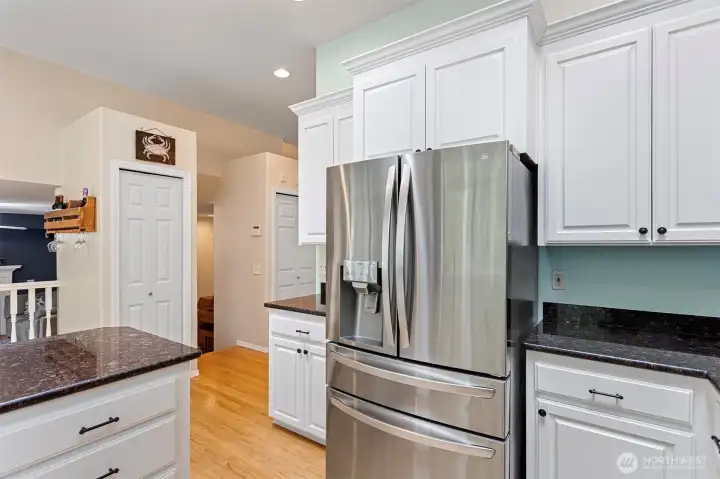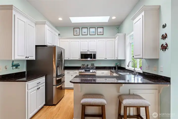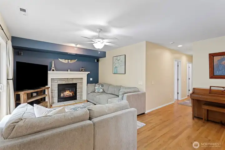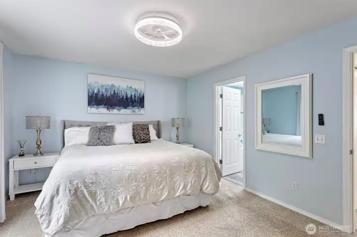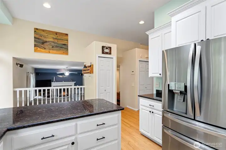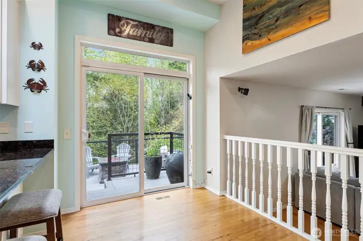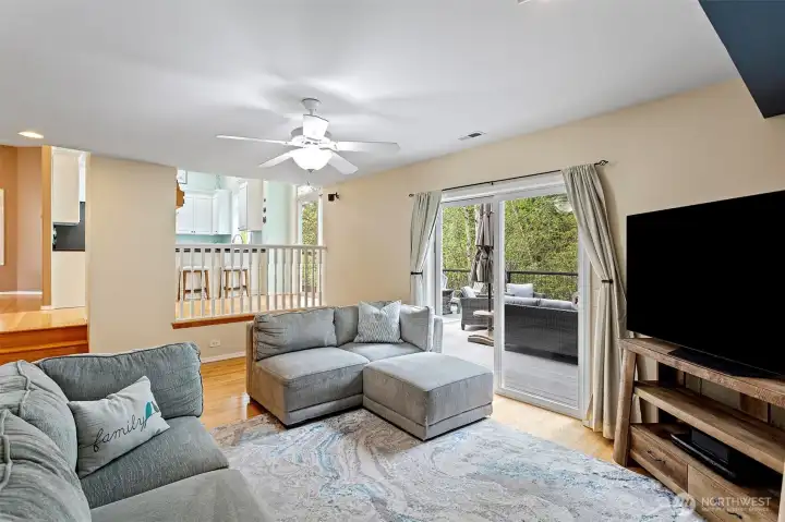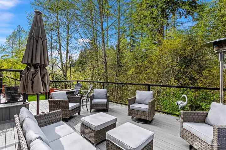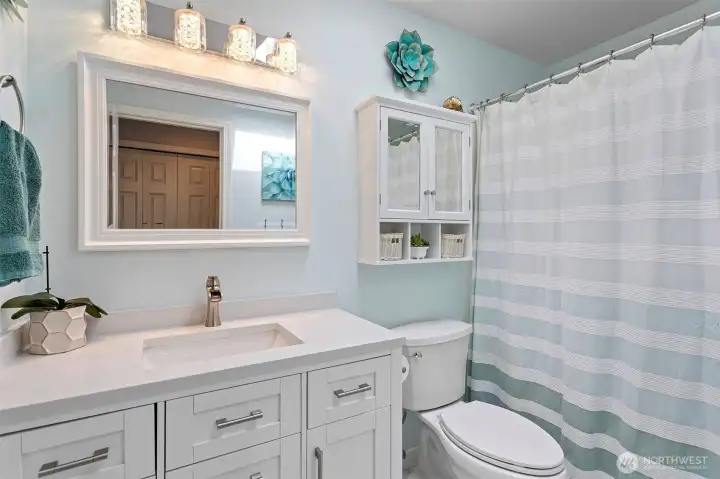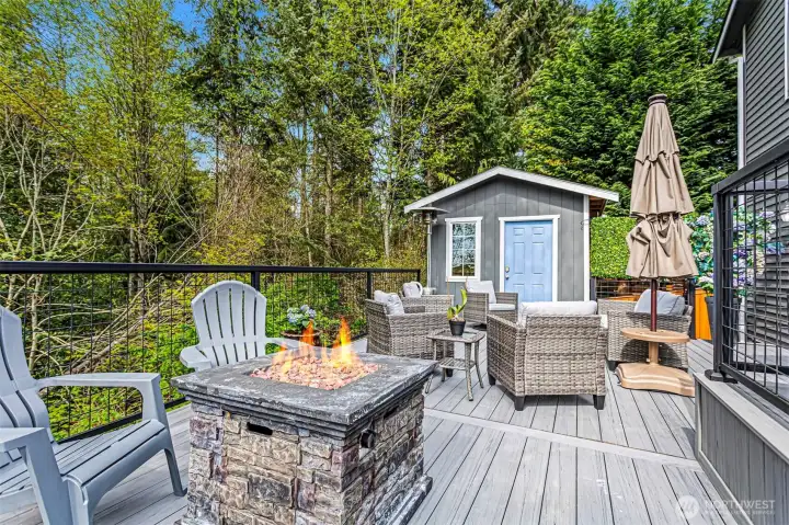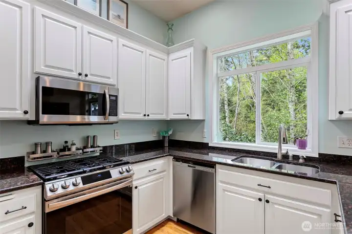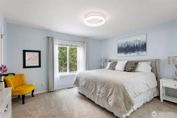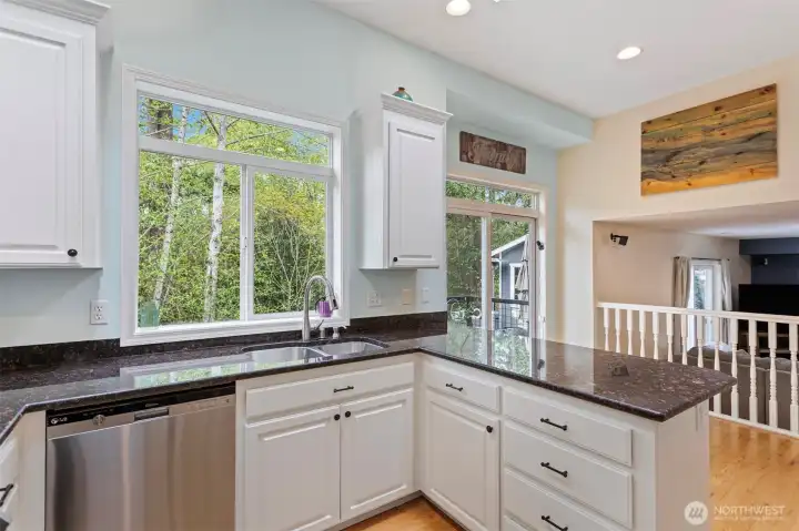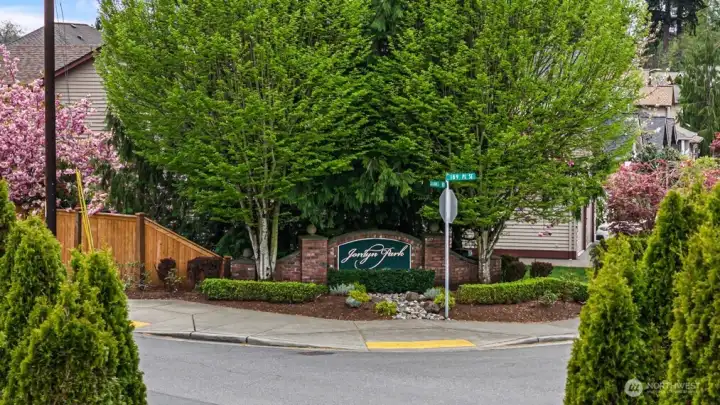Rare opportunity for a peaceful greenbelt home in Jordyn Park. Meticulously maintained 4-bedroom home, with one bedroom and ¾ bath on the main level, perfect for guests, home office, or workout space. Hardwood floors throughout the main living areas, and ceramic tile in the 3 updated bathrooms. Kitchen has newer stainless-steel appliances and granite counter tops. Two main living areas with spacious formal living room and dining room, and cozy family room with a gas fireplace. Two sliding doors open up to the large composite deck that backs to a protected greenbelt. It is a tranquil space to enjoy warm summer nights as the sun sets behind the tall evergreens. A custom-built shed can house all your gardening tools or deck furniture. Primary bedroom faces the greenbelt as well to enjoy birdsong in the morning and frogs at night. Updated en suite bath with frameless glass shower and soaking tub. Two additional bedrooms upstairs get the morning sunrise. Community areas include a sports court that can be used for basketball, volleyball, tennis and pickleball. The playground and open space is available for use with provided picnic tables. Community events include Easter egg hunts and a Halloween warming station with hot cocoa and cider to warm you on the chilly fall night. Top rated Northshore School District and close to Mill Creek Town center makes this is a perfectly situated home for your next chapter.