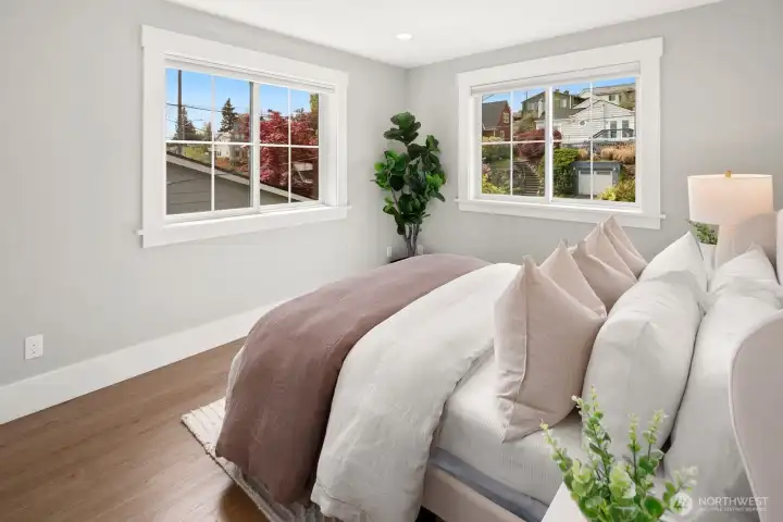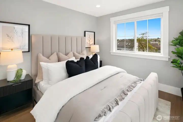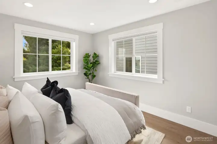 Experience modern efficiency in this 2021-built home, perfectly designed for luxury living or high-end rental potential. This 1,068 sqft residence blends premium craftsmanship with sustainable tech, featuring a highly insulated envelope, Anderson fiberglass windows, and solid wood core doors for ultimate peace and quiet.The open-concept main floor boasts hardwood flooring, a custom tile kitchen with full-sized appliances, and a stunning floor-to-ceiling tiled powder room. Step outside to your large private deck and fully fenced yard - ideal for pets or entertaining. Upstairs, discover two oversized bedrooms with dedicated in-ceiling AC units and a spacious laundry room.Equipped with ductless heat pumps, a heat pump water heater, and Cat 6 wiring, this home offers peak performance and comfort. Whether you're looking for a chic primary residence or a savvy investment, this turnkey DADU delivers.