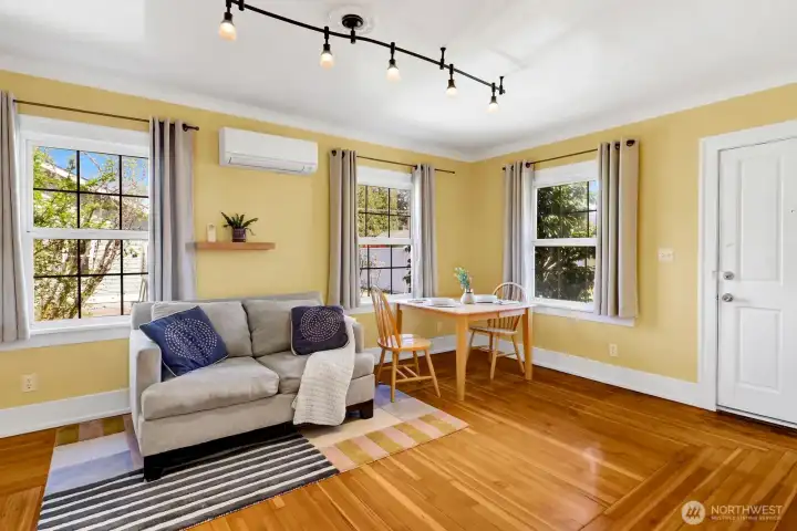 Welcome home to Bellingham's Columbia neighborhood! Enjoy a beautifully finished home with rich original fir floors and classic finishes wrapped into an efficiently designed interior. The fully-fenced backyard is truly dreamy, and features a detached garage, garden shed, planter boxes, and ample space for yard games or fireside hangout. It's perfect for relaxing or hosting during those golden summer evenings. In the sun drenched front yard, a greenhouse fashioned from reclaimed materials from the local re-store, compliments the several fruit trees including apricot and asian pear. You’re not just buying a beautiful craftsman home, you're gaining peace of mind. Exterior paint, new roof and Mitsubishi mini split heat/cool system all done in 2023. All new appliances in recent years, including electric water heater in early 2026. New cedar fencing & gates in 2025. Main sewer line from house to street replaced by a prior owner in the last decade. Just a block away from Haggen grocery and a short jaunt down to Good's Local Brews, Elizabeth Park and Roam Coffee, this home is truly a Bellingham classic!