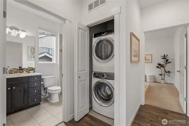 Rare Opportunity in Lynnwood! This meticulously maintained 2018-built home offers the ultimate "Home within a Home." The rare, self-contained MIL suite—featuring a private entrance, full kitchen, laundry, and living room—provides incredible potential for rental income or a private professional office. As a former model home, no detail was spared. Enjoy an open-concept layout, a chef’s kitchen with a massive quartz island, and brand-new paint throughout. Tech-forward features include integrated smart home systems, built-in speakers, and central AC for year-round comfort. Located in the heart of Lynnwood near Alderwood Mall and the future Light Rail station, you are perfectly positioned for both convenience and long-term value. Top-rated Edmonds schools and easy freeway access make this the perfect 10.