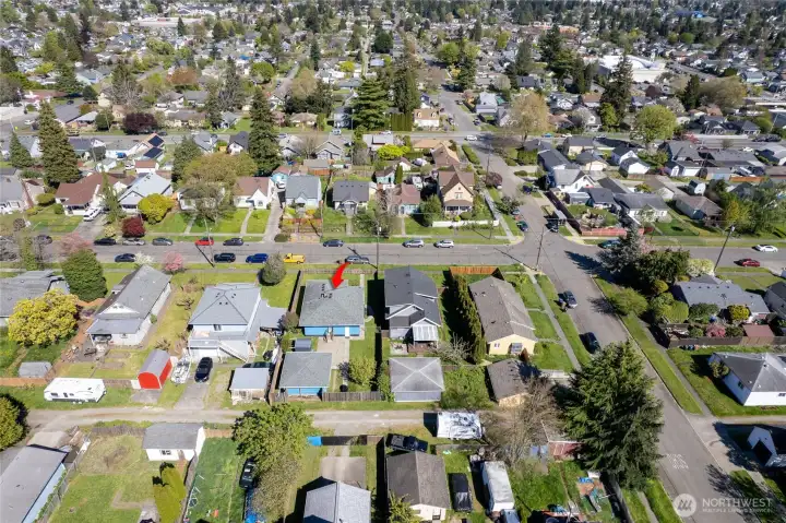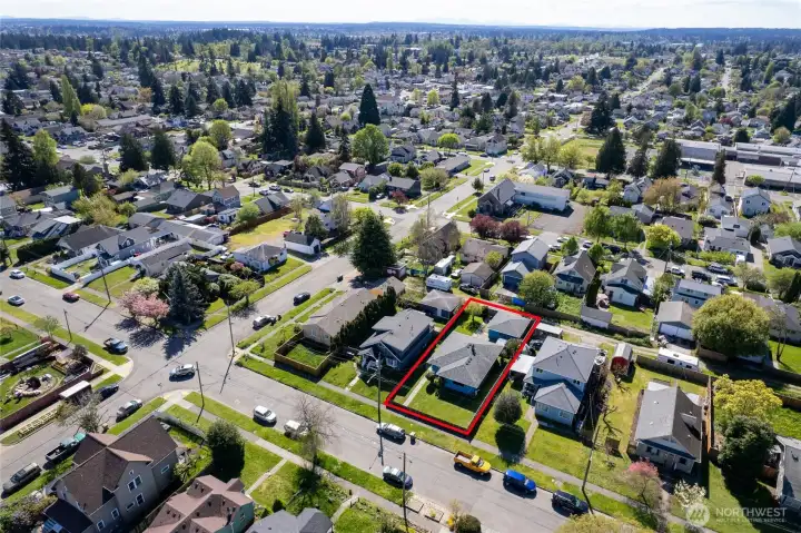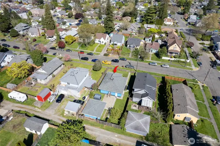 Welcome to this charming 2-bedroom, 2-bath home filled with natural light and beautiful hardwood floors and 1,464 finished square feet. The spacious upstairs features a generous kitchen with eating area, a bright living room with a large picture window, two oversized bedrooms, and a full bath. The lower level offers two finished rooms, a 1.75 bath, abundant storage, and a separate entrance with high ceilings—potential for an ADU conversion (buyer to verify). Outside, enjoy a private, fully fenced yard, drive-in gate from the alley, and a two-car garage with workshop space and 220 amp hookup. The roof is a 40 year architectural comp and is 12 years old, the side sewer and water line were replaced 15 years ago.This home located in south Tacoma is the perfect blend of vintage charm and modern convenience.