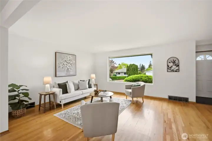 The west facing living room gets great light with a west facing picture window.