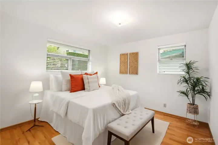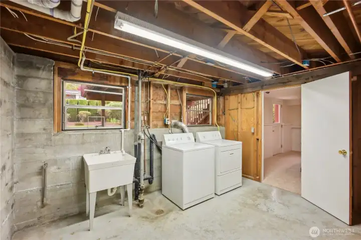 Life is easy in this stylish 3-bedroom, 1-bath mid-century home in the heart of Maple Leaf! Set on a beautifully landscaped 9,214 square foot lot, this property offers flexibility for today and opportunity for tomorrow. Enjoy comfortable living as-is, reimagine the lower level for added finished living space, or explore future development potential (buyer to verify). Recent updates include a newer roof, newer furnace, repaired sewer line and decommissioned oil tank. Inside, you’ll find lovely oak hardwood floors, a wood-burning fireplace, a remodeled bathroom, fresh interior paint and a bright, open living and dining area. The kitchen features refinished parquet floors and easy access to a large back deck—perfect for entertaining or relaxing. The lower level offers a rec room with new carpet and paint, plus a spacious utility/storage area ready for expansion. A 2-car garage with workshop space adds versatility. This wonderful home is located just a short stroll to Maple Leaf Reservoir Park, neighborhood cafés, shops and dining, with easy access to multiple bus lines, Northgate Light Rail, I-5, 99 and Green Lake. Seller provided inspection and sewer scope available. A well-maintained classic offering endless potential!
