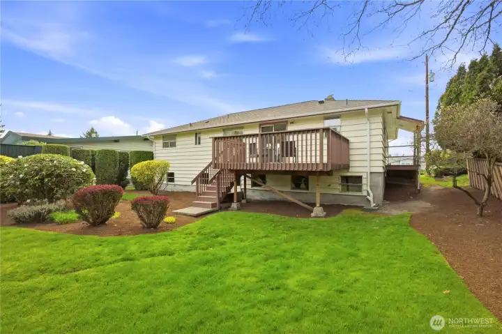 The beautiful freshly stained back deck offers the opportunity for outdoor dining or relaxation.