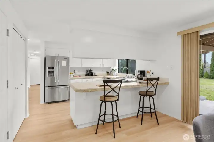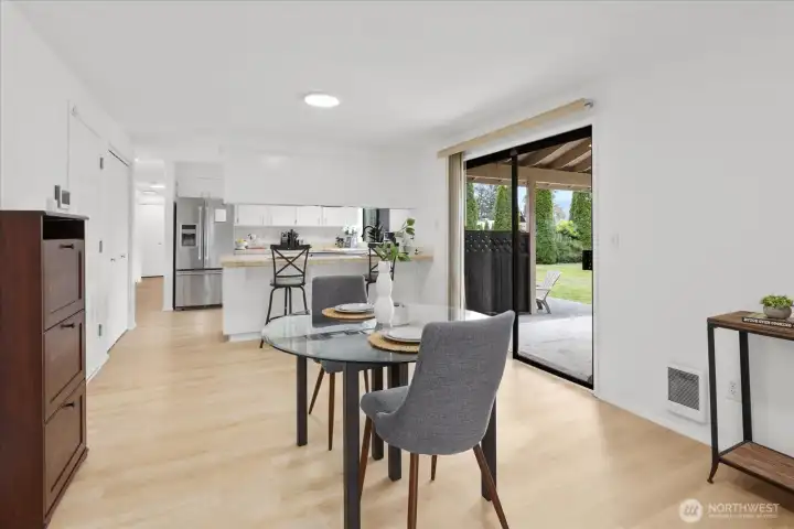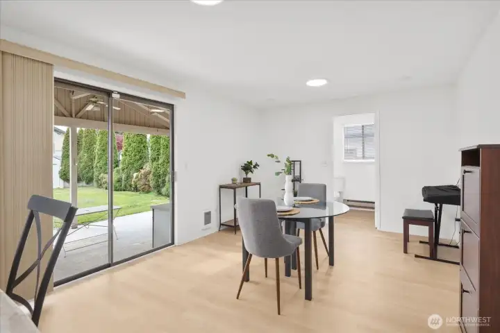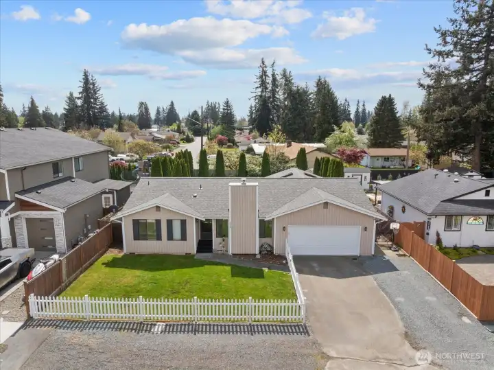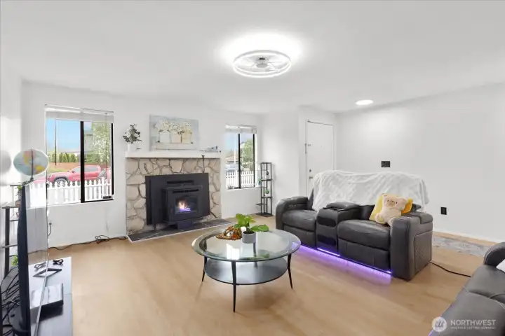 Welcome to the heart of Marysville. Tucked into a quiet neighborhood, this 3-bedroom, 2.25-bath rambler is ready for its next owner. With no HOA, you’ll enjoy added flexibility and fewer restrictions. As you step into the living room, you’re welcomed by a comfortable space ideal for gathering with friends, complete with a pellet stove that adds both warmth and charm. Ceiling fans throughout the home provide added comfort year-round. The kitchen offers ample space for cooking and entertaining, seamlessly connecting to the dining area with direct access to a large back patio—perfect for outdoor meals or relaxing evenings. The backyard also features a fire pit, creating an inviting setting for year-round enjoyment. Down the hall, past two additional bedrooms, you’ll find the primary suite with its own attached bath and walk-in closet. Thoughtful storage options throughout the home provide flexibility and convenience. This home offers the ease of single-level living, practical features, and Northwest charm—an inviting place to settle in and make your own.