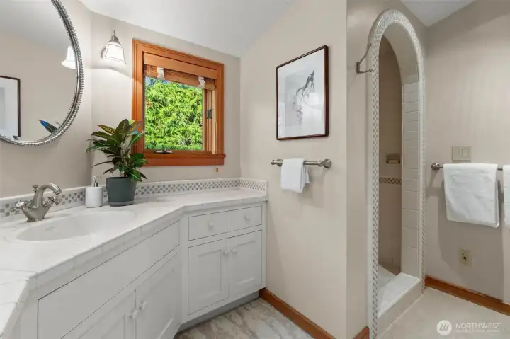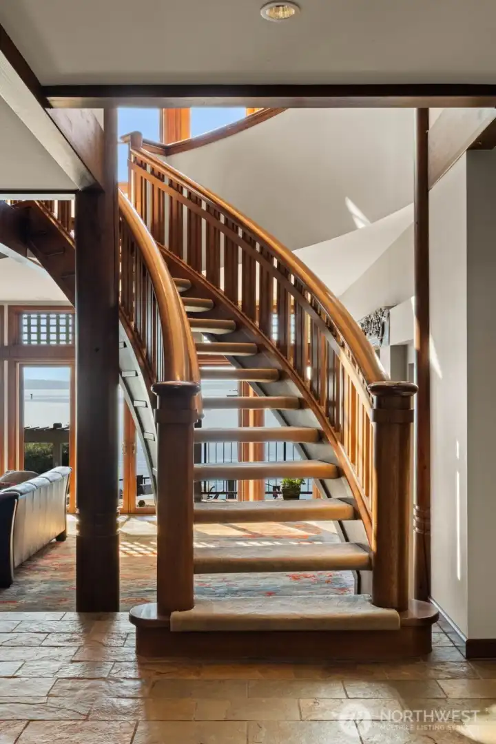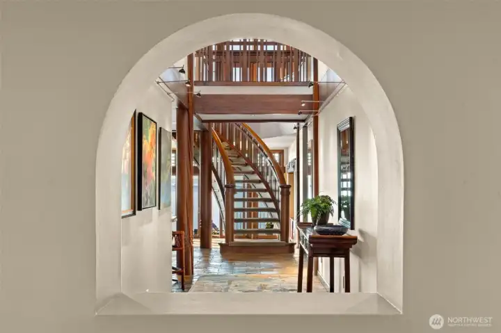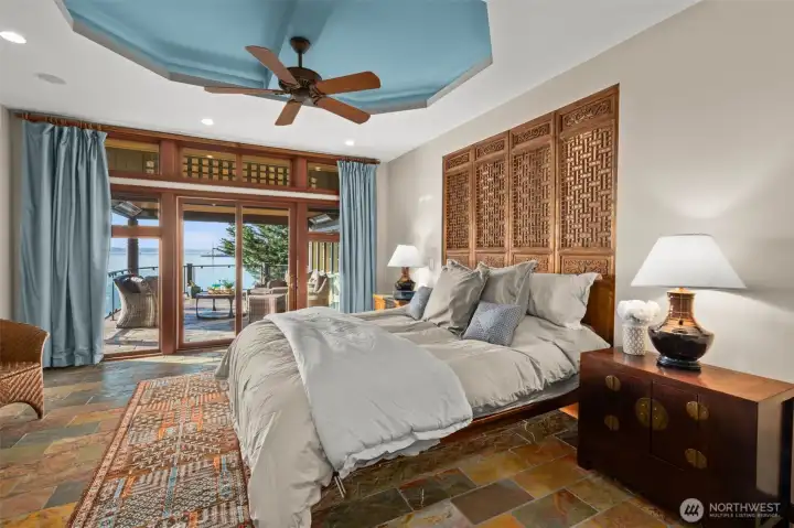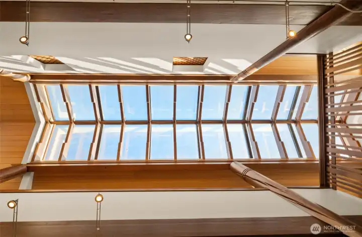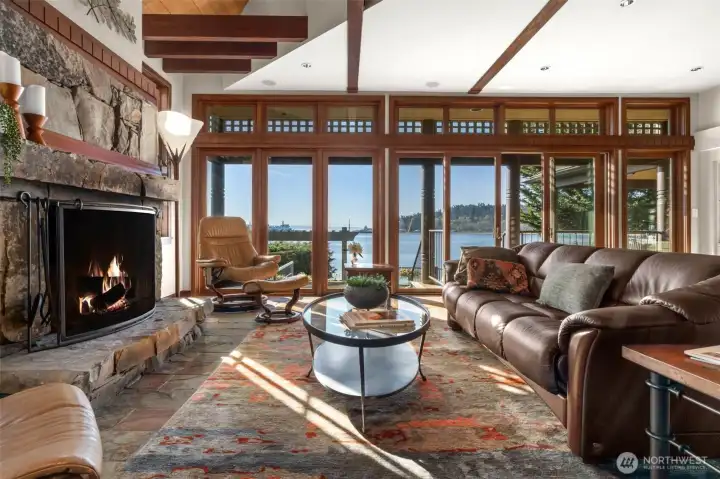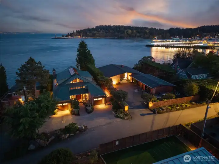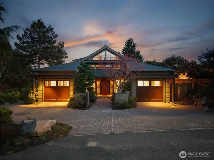 The Mitchell House. First time on the market, this was the personal residence of acclaimed architect Jay Mitchell. Set just above the shoreline on Bainbridge Island’s coveted Hawley Cove, the home reflects a disciplined, artful response to site, light, and view. Every room is oriented to the water, capturing expansive views of Mount Rainier, with ferries and rowers moving quietly across the scene. Drawing from both PNW and Asian influences, the architecture is deliberate and refined; grounded in strong lines, precise proportions, and a clear connection to its setting. A dramatic 25-foot skylight serves as a central architectural element, introducing vertical volume and a shifting quality of light that animates the interiors throughout the day. Natural materials are paired with carefully collected artistic elements from around the world, adding depth and quiet character. The layout unfolds intuitively, balancing openness with moments of privacy, creating interiors that feel both expansive and composed. This home lives with ease. Circulation is seamless, and each space is purposeful. Don't miss the guest apartment with its own private entrance offering comfort and autonomy for extended stays, hosting, or work-from-home use. Expansive outdoor entertaining is thoughtfully integrated, with multiple curated spaces for gathering and dining on the decks or at the waterfront.Set in a peaceful neighborhood just a ten-minute walk to Winslow, a rare balance of privacy and access.