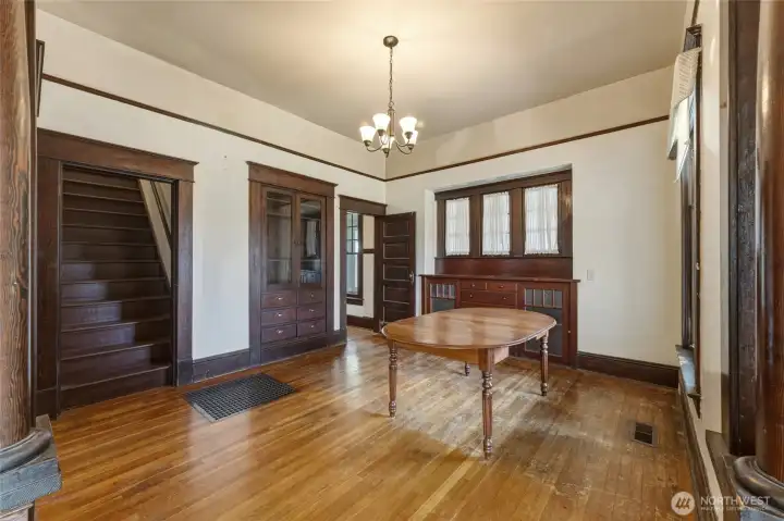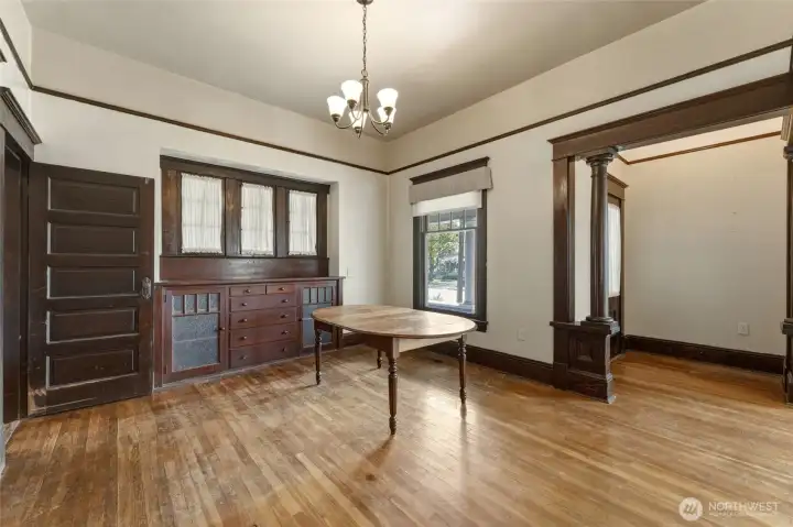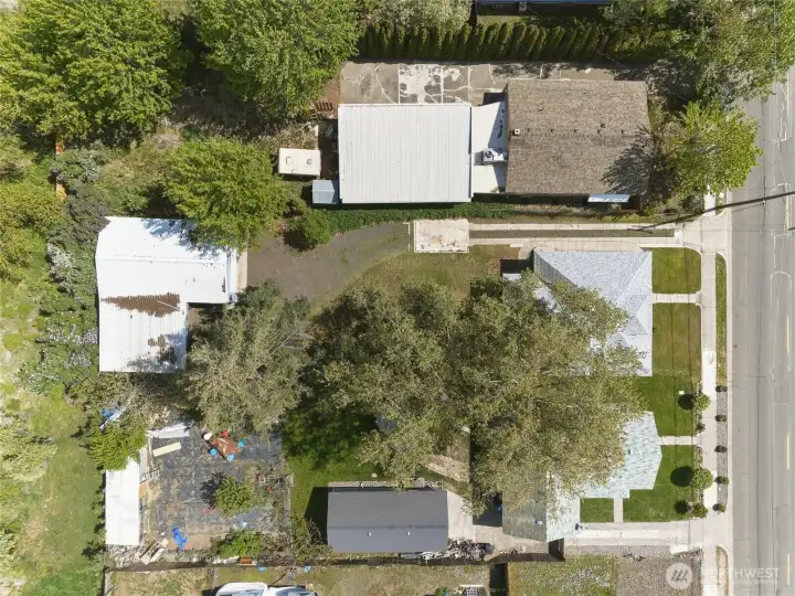 Fall in love with the timeless character and charm of this home with many vital updates. Featuring original woodwork, tall ceilings, classic built-ins, and original cabinetry. Rich in personality yet thoughtfully improved, this property offers the best of both worlds with all new wiring, plumbing, heating, and cooling for modern peace of mind. The inviting enclosed side porch is perfect for a plant collection, reading nook, or sunny retreat, while the welcoming front porch is made for relaxing and front porch swinging. Two bedrooms are located on the main level, with a spacious upstairs bedroom and bathroom offering flexibility for guests, a private primary retreat, or bonus living space. Outside, enjoy a large private yard with plenty of room to garden, entertain, or simply unwind. A standout feature is the impressive 900 sq ft pole building with concrete flooring, plus an attached 720 sq ft carport providing abundant space for parking, storage, hobbies, or projects. A rare opportunity to enjoy vintage charm with major system updates already completed.