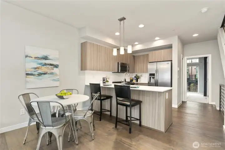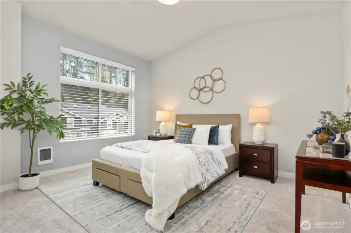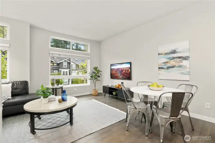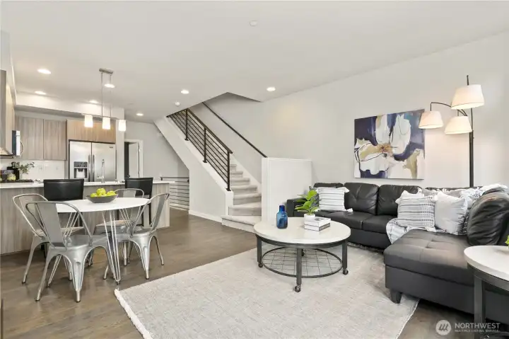 Amazing modern home in the Talus neighborhood. 3 bedrooms/2.5 baths in 1356 square feet of light and bright living space. Main level with hardwood floors. Kitchen with Quartz countertops, gas range and stainless steel appliances. Comfortable living room/great room with lots of sun. Bedroom/den with a 3/4 bath and a deck. Metal stair railings, high ceilings, big windows, 2 inch blinds throughout. Primary bedroom upstairs with vaulted ceilings plenty of closet space and a lovely bathroom. 2nd bedroom with a hallway full bath. Upstairs laundry. 2 car tandem garage, tankless hot water tank, brand new carpet throughout. Talus is surrounded by hundreds of acres of protected forest land, parks, and endless hiking trails to explore. Minutes to I-90 with access to Seattle, Bellevue and all of the outdoor fun close by. An easy walk to downtown Issaquah and all it has to offer. Award Winning Issaquah Schools.