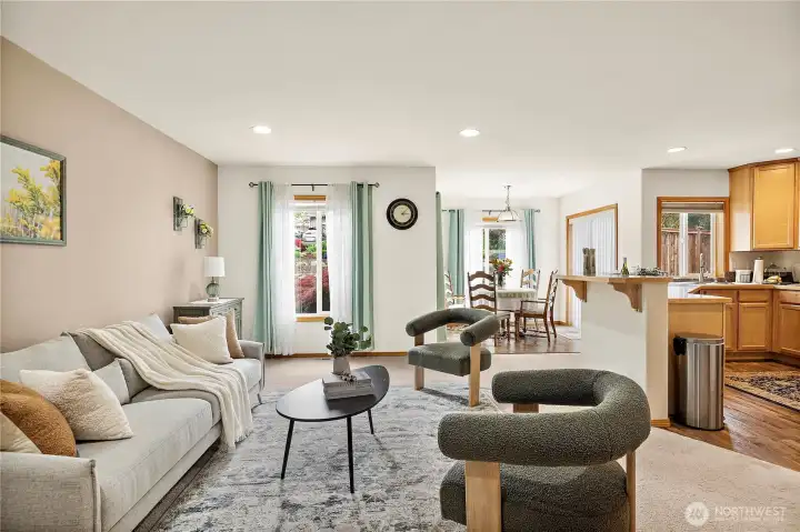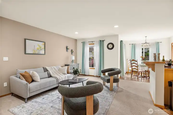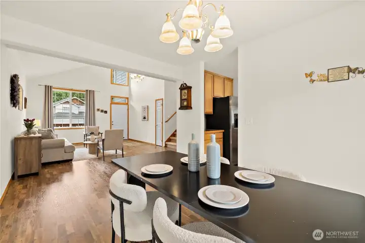 First time on the market! This well-maintained 2,328 sq ft home in the desirable Kent Lake Meridian area offers 4 bedrooms, 2.5 baths, and a 2-car garage, tucked away in a quiet cul-de-sac with no HOA. Step inside to an inviting, open living room with vaulted ceilings that create a bright and airy feel. Functional and spacious layout with recent updates, including a newer HVAC system, furnace, water heater, and washer/dryer. Newer applainces. Newer carpet and flooring. Two dining areas, plenty of room for guests. The primary suite features a recently updated bathroom for added comfort. The exterior has newer paint, enhancing the home’s great curb appeal. Plenty of street parking available for guests and gatherings. Enjoy convenience with nearby shopping, dining, and easy walking distance to schools. Gas line for stove is available. A rare opportunity combining location, updates, and pride of ownership. No HOA!!