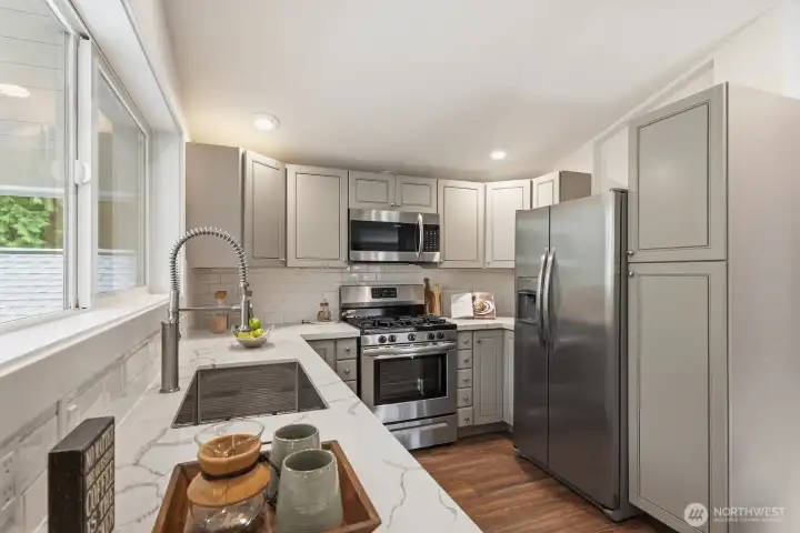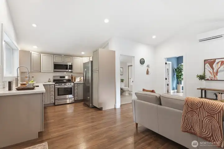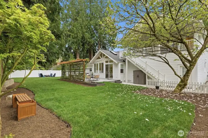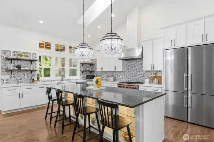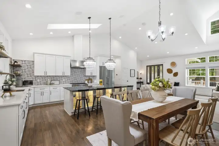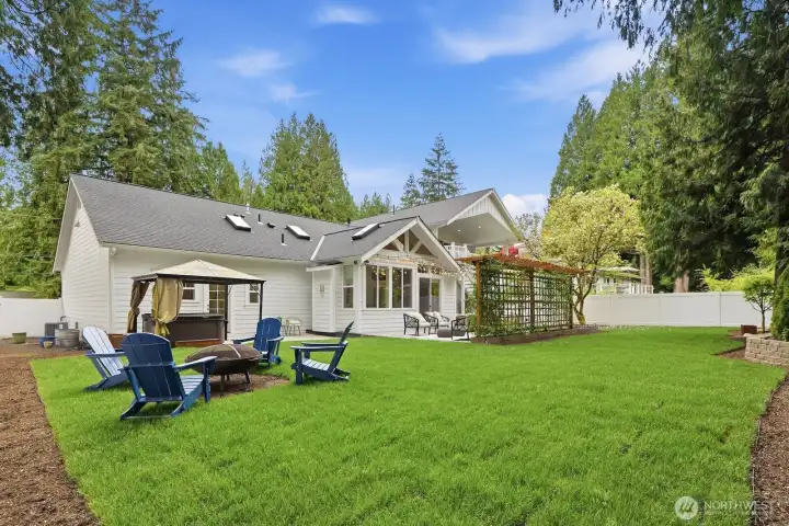 Tucked in a scenic, quiet nook of Bothell sits this modern storybook jewel, custom-built in 2019 for those who value privacy & prestige. From the moment you arrive, you’ll know this one is special. A classic white picket fence & farmhouse porch draw you into an impressive great room where living, dining & cooking blend seamlessly. Abundant windows, massive skylights & soaring ceilings fill the space w/ sparkling year-round light. Experience a chef’s dream in the magazine-worthy kitchen: high-end appliances by Wolf & Liebherr, a huge 10' island w/ lighted cabinets, quartz counters & an unmatched walk-in pantry. 3 spacious beds include a primary w/ walk-in closet & 5-piece spa ensuite. Discover premium details throughout: 2 gas fireplaces, central A/C, infrared sauna, heated floors in all baths & the sunroom, smart wiring/switches, built-in speakers, shiplap accents, tankless water heater - the list goes on. The delightful sunroom leads to a sprawling patio overlooking a level, fenced yard w/ a covered hot tub, magnolia & cedar trees, & sprinklers to keep plants happily watered. Above the garage, find a fully permitted/separated 1 bed/1 bath ADU where versatility knows no bounds: use it as an Airbnb or long-term rental, or as space for guests/generational living. This is a home to take pride in. Located just 1 mile from downtown Bothell w/ prized Northshore schools, amenities & freeways just minutes away.