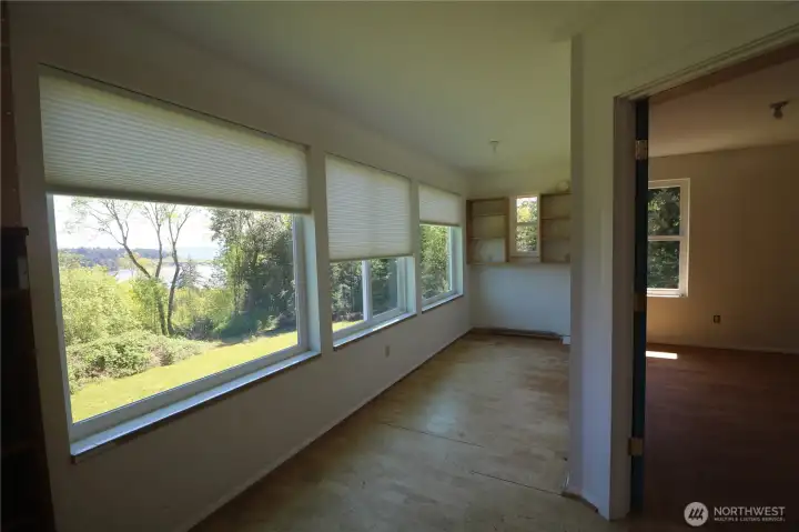 Amazing Views of Water and Mountain from Kitchen, Living Room and Office/Reading Nook!!! Bright 2 Bedroom 1.25 Bath Home on Camano Island boasts a living room with tons of windows, eat in kitchen with granite countertops and stainless steel appliances. Perched on top of a hill on a 3 plus acre lot offering absolute privacy and picturesque views of Triangle Cove and Three Fingers Mountain from all living areas. Home is ideal for peace and relaxation with triple pane windows throughout, cork flooring, tankless water heater, a covered front porch, and a balcony off the kitchen plumbed with propane and water. Walk downstairs to a HUGE 1,400+ square foot attached shop with 17 foot ceiling. Shop is equipped with a half bathroom, 220 Volt outlets for Fast Car Charger and Heavy Equipment, oversized garage door for RV Parking or large trucks, air compressor and a 1 ton lift. The shop is large enough to have both RV Parking and a workshop. Third detached garage is fully insulated, ideal for an extra car, a gym or even a man cave or she shed. Quiet neighborhood with easy access to shopping, restaurants and all conveniences.