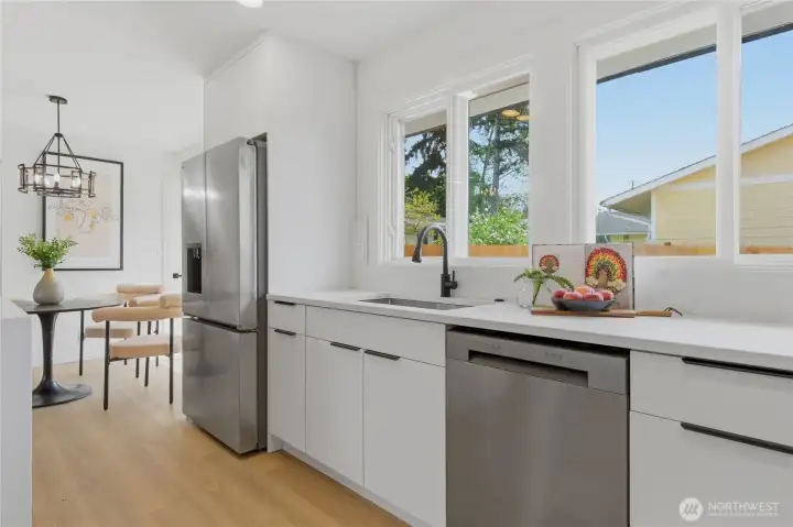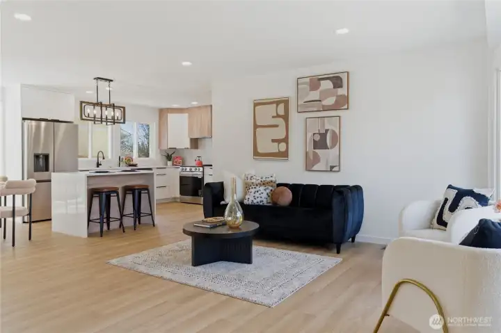 Stunning fully renovated 4-bed,2-bath home offering modern luxury at an exceptional value! Thoughtfully redesigned with high-end finishes throughout, this home features a bright open-concept layout and abundant natural light. The elegant living space showcases custom wood panel accents and a wood burning fireplace, creating a warm, upscale feel. The designer kitchen is a true showstopper with European-style cabinetry, premium tile finishes, stainless steel appliances, and a striking waterfall-edge island—perfect for entertaining. Enjoy beautifully updated bathrooms with spa-inspired finishes and a spacious layout designed for comfort. Situated on a huge, fully fenced lot, this property offers endless possibilities for outdoor living, expansion, or investment potential. Located close to schools and everyday amenities, this move-in-ready home is priced to sell—a rare opportunity to own a turnkey luxury home at an incredible value!