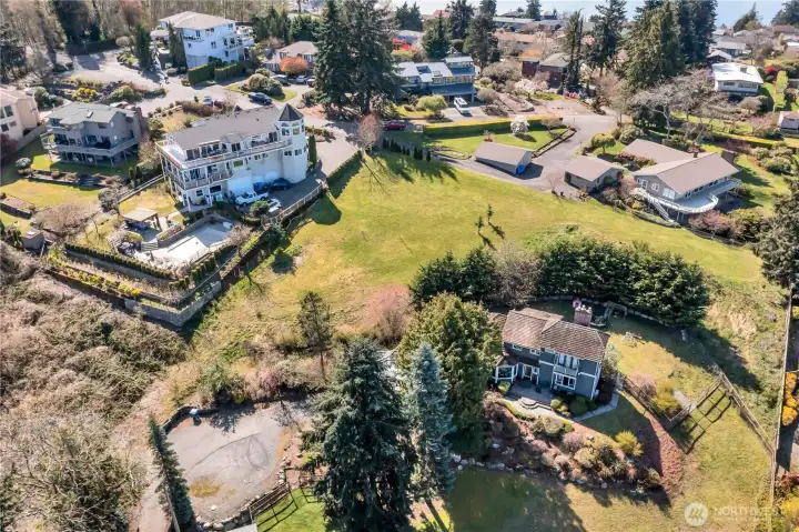 The lot has a slight slope. As far as we know, all homes to be built will have Sound and Mountain views.