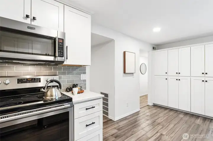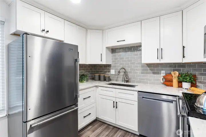 Welcome to one of the best values for a 3 bedroom home in Kirkland, offering exceptional space, style, and location at an attractive price point. This fully updated condo features durable LVP flooring throughout and a beautifully remodeled kitchen. Enjoy white shaker cabinetry, quartz countertops, stainless steel appliances, a modern backsplash, pantry, and lots of storage that continues throughout the home. The spacious living area is warm and inviting, centered around a cozy wood burning fireplace, and flows seamlessly to a private patio that is perfect for relaxing or hosting, complete with a large storage closet. This rare layout offers 3 bedrooms and 2.25 baths along with 3 separate patios for true indoor outdoor living. The primary suite includes its own private patio, en suite bath, and walk in closet. A generously sized secondary bedroom features its own half bath and private patio, ideal for guests, roommates, or a home office setup. Additional highlights include a carport parking space, ample guest parking, and an additional storage room. Enjoy the best of Kirkland living just minutes from Juanita Village and Juanita Beach, with easy access to I 405 and major employers including Google, Amazon, and Microsoft. Located in the highly regarded Lake Washington School District. Low HOA dues include water, sewer, and garbage. Don’t miss your chance to own a spacious, move in ready home and enjoy the Kirkland lifestyle at a price that is hard to find.