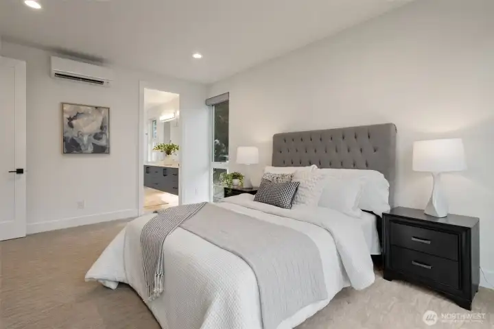 The generous primary bedroom, lives like a brand new home with all finishes very lightly lived in. Plenty of room for a king bed + large side tables + seating area.
