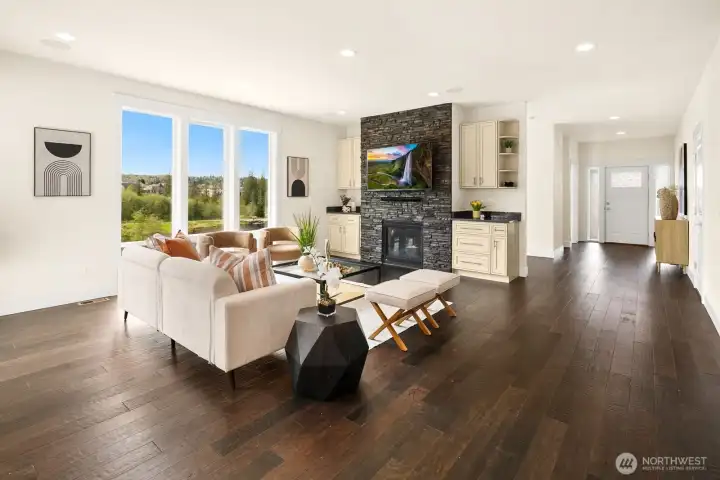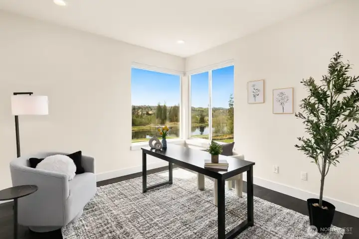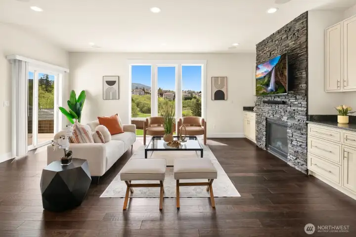 Beautiful 180° views of Otter Pond Valley and the surrounding mountains set the stage for this light-filled home. The great room showcases floor-to-ceiling windows, custom built-ins, and gas fireplace. A chef’s kitchen features designer Bertazzoni SS appliances. The primary suite offers a spa-like bath, dual walk-in closets, and a private deck for peaceful retreat. Two additional bedrooms plus a den complete the main level. The lower level, with a separate entrance, w/kitchen, laundry, and ¾ bath perfect for guests or multigenerational living. A versatile flex room opens to expansive patio, seamlessly blending indoor & outdoor living. Just steps from the lake and community walking trails, this home offers the perfect daily escape to nature.