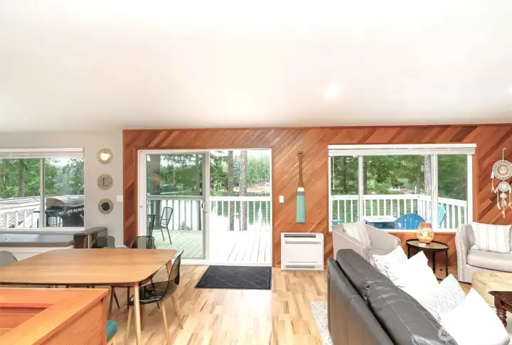 Lake Life is calling on gorgeous Hood Canal! THE Quintessential Lakehouse with a fresh $100,000 remodel is ready for relaxing Summer days on 75’ waterfront w/private pebble beach, rare boathouse & 2 docks. One of the largest, tranquil Lakes w/year-round trout fishing (73-acre, electric motor only, bring your pontoon). Cozy & inviting vibes: Solid cedar tongue & groove walls, crisp white quartz, subway tile! Designed for expansive, sparkling water VIEWS from every room through walls of oversized windows on both levels and a seamless connection to nature w/resident eagles. Mins to Alderbrook Resort & Spa and local seafood legends (Hama Hama, DeNotta, Tom Farmer, Union City Market, Hook & Fork). New modern amenities: Olympic Hot Springs 7-person Easy-Care hot tub (just cleaned w/new filters), cool A/C, fiber-fast internet, double pane windows/sliders, interior/exterior paint, dimmable LED, black-out blinds, oversized 2-car garage with shop space, paver steps to no bank lakefront. AND If you’re interested in reducing your expenses this home is awarded the TOP 5% of Mason County Vacation Rentals (Guest Favorite, 112+ 5-star reviews) GROSSING $212,000 in the last 4 years with $70k+ gross income renting 30% of the year. Quality getaway & investment opportunity only 10 min to growing DT Belfair, parks & golf, local shops/brewery/winery, hiking, recreation & optional Hood Canal Puget Sound beach club w/boat launch. Can sell furnished (sold separately). Adventure Awaits, Kayaks Ready!