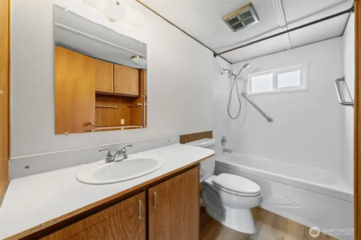 Welcome home to this well-maintained residence in a convenient 55+ Co-Op community! Thoughtfully updated over time, this home features new vinyl plank flooring in the kitchen and bathroom, along with freshly cleaned carpets throughout. The bathroom has been refreshed with modern finishes, including an updated sink, tub, surround, and new bath fan. The roof has just been recoated/sealed, and a newer mini split (2022) provides efficient year-round comfort, with the original natural gas furnace available as a backup heat source. Additional updates include replacement vinyl double-pane windows & kitchen cabinets. Enjoy one of the larger yards in the community, plus a workshop/storage shed and covered 2-car parking. Ideally located near I-5, Tumwater Schools, shopping, and more!