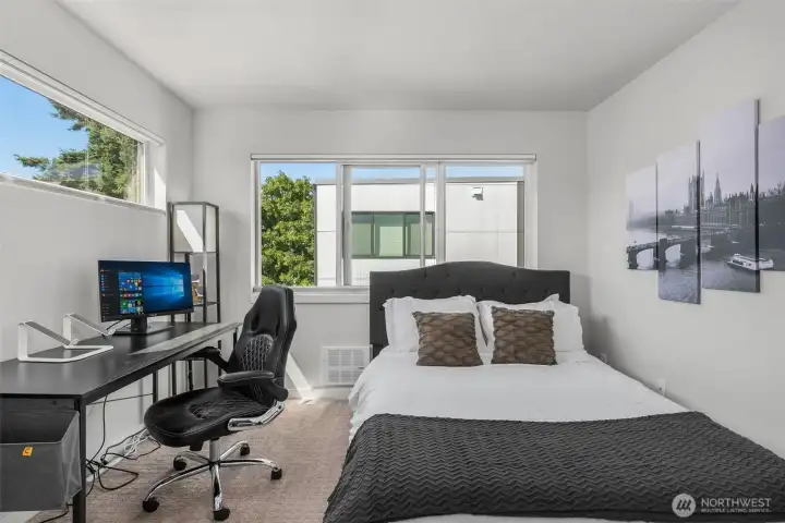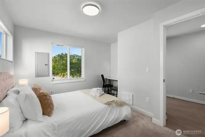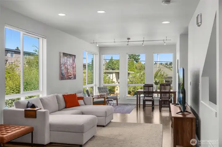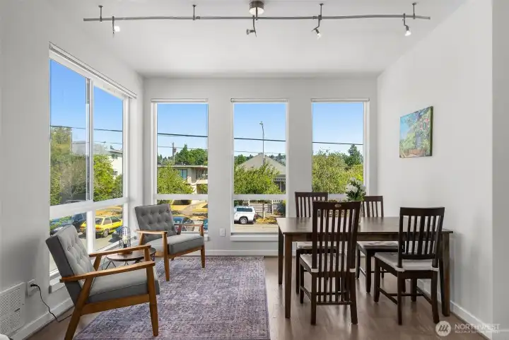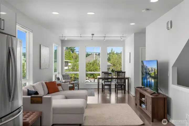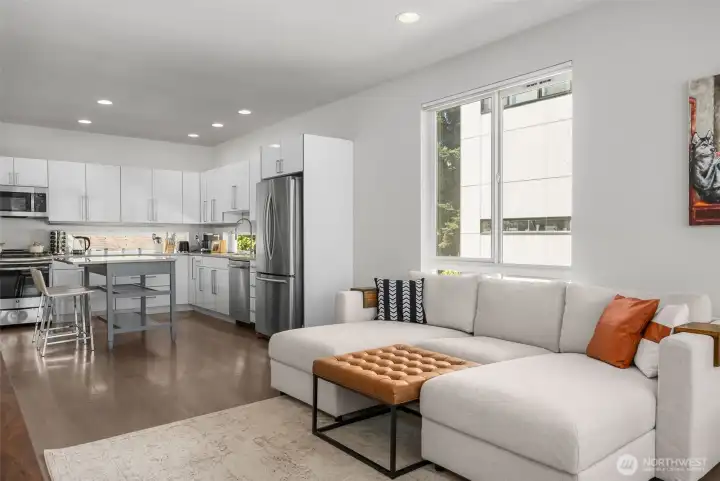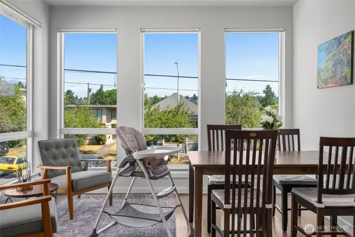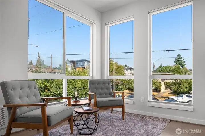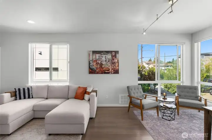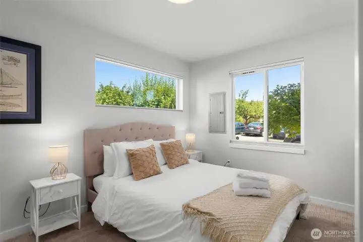 Amazing location right in the heart of Ballard w/ dynamic views of Mt. Rainer, Seattle Skyline & Gemenskap Park W/ LARGE ATTACHED GARAGE! Boasting a functional floor plan & eco-friendly design w/ an abundance of natural light flooding each room. Open space layout to dining & living area w/ floor to ceiling windows that offer great natural light. Spacious, high-end Chef’s kitchen w/ plenty of counter & cabinet space, gas stove & ISLAND! Master bedroom has private balcony w/ Mt. Rainer views. Each bedrooms has generous closet. Full size bedroom on lower level. Attached garage that can fit more than your car, plenty of storage or use for home gym! Gemenskap Park has green space that spans for 2 blocks across the street - perfect for pets, play or just relaxing at the park. Close to vibrant Ballard Downtown, public transportation, grocery stores, restaurants, nightlife & Golden Gardens Beach! WalkScore of 93! New appliances! Newly installed, 2024, Mitsubishi Ductless mini splits for heating and cooling!