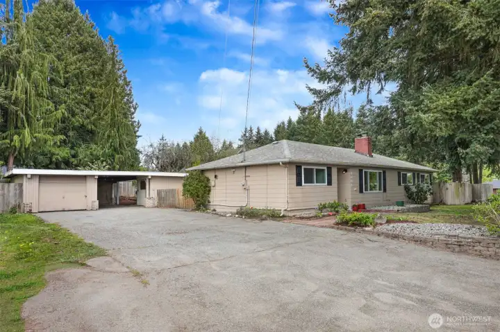 Delightful corner-lot rambler near Edmonds offering space, comfort, and a layout that lives well. With 4 bedrooms and 1.75 baths, the floor plan offers great flexibility to fit a variety of needs—use all four bedrooms, or configure the space as a 3-bedroom with a separate family room or dedicated work-from-home office. The fourth bedroom also has the option to function as a private suite, complete with its own bath and walk-in closet.The kitchen connects easily to the main living space, while French doors open to a fully fenced backyard with patio—surrounded by mature trees that create a private, inviting outdoor setting. Ample parking includes a detached garage, carport, and dedicated RV space. Ideally located just minutes to downtown Edmonds, with easy access to Hwy 99 and I-5, plus nearby parks, shops, and local favorites.