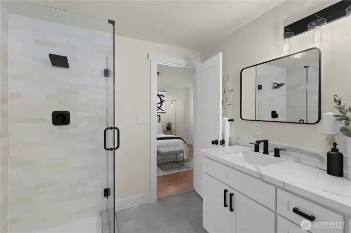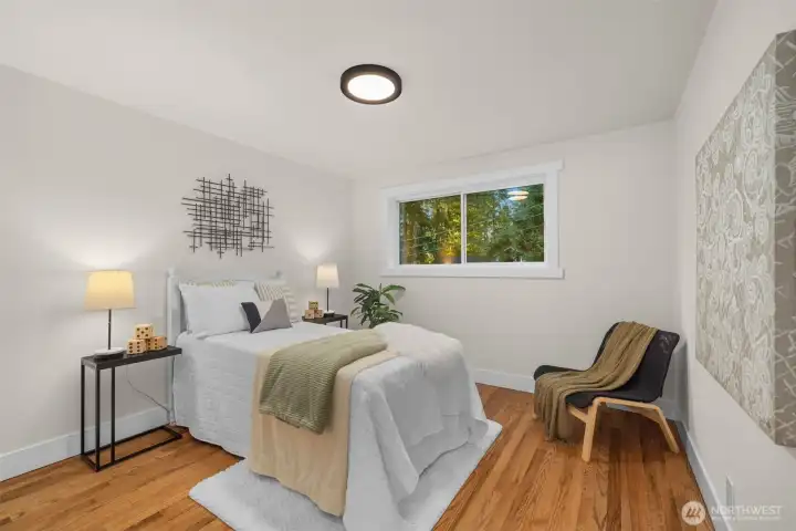 Beautifully renovated 4 bedroom, 2.75 bathroom home tucked at the end of a quiet cul-de-sac. Enjoy deeded access to the Civic Club, a private Lake Washington waterfront community offering a beach, dock, and boat launch. The light filled kitchen features quartz countertops, new cabinetry, and new appliances. The kitchen opens effortlessly to the living and dining areas, creating a seamless and inviting space for everyday living and entertaining. Step outside to a covered deck designed for year round enjoyment, complete with peekaboo Lake Washington views in the winter. The main level showcases newly refinished hardwood floors, a spacious primary suite, and two additional bedrooms. A wood burning fireplace connects both levels, bringing warmth and character to the home. The lower level offers exceptional flexibility with two separate ground level entries, a generous living area, bedroom, and full bath. There is space to add a kitchenette, presenting an ideal opportunity for multigenerational living or income potential. The beautifully landscaped backyard features rose bushes, raspberry and blueberry plants, three apple trees and more. Situated on a large lot with boat/RV parking, this home truly has it all!